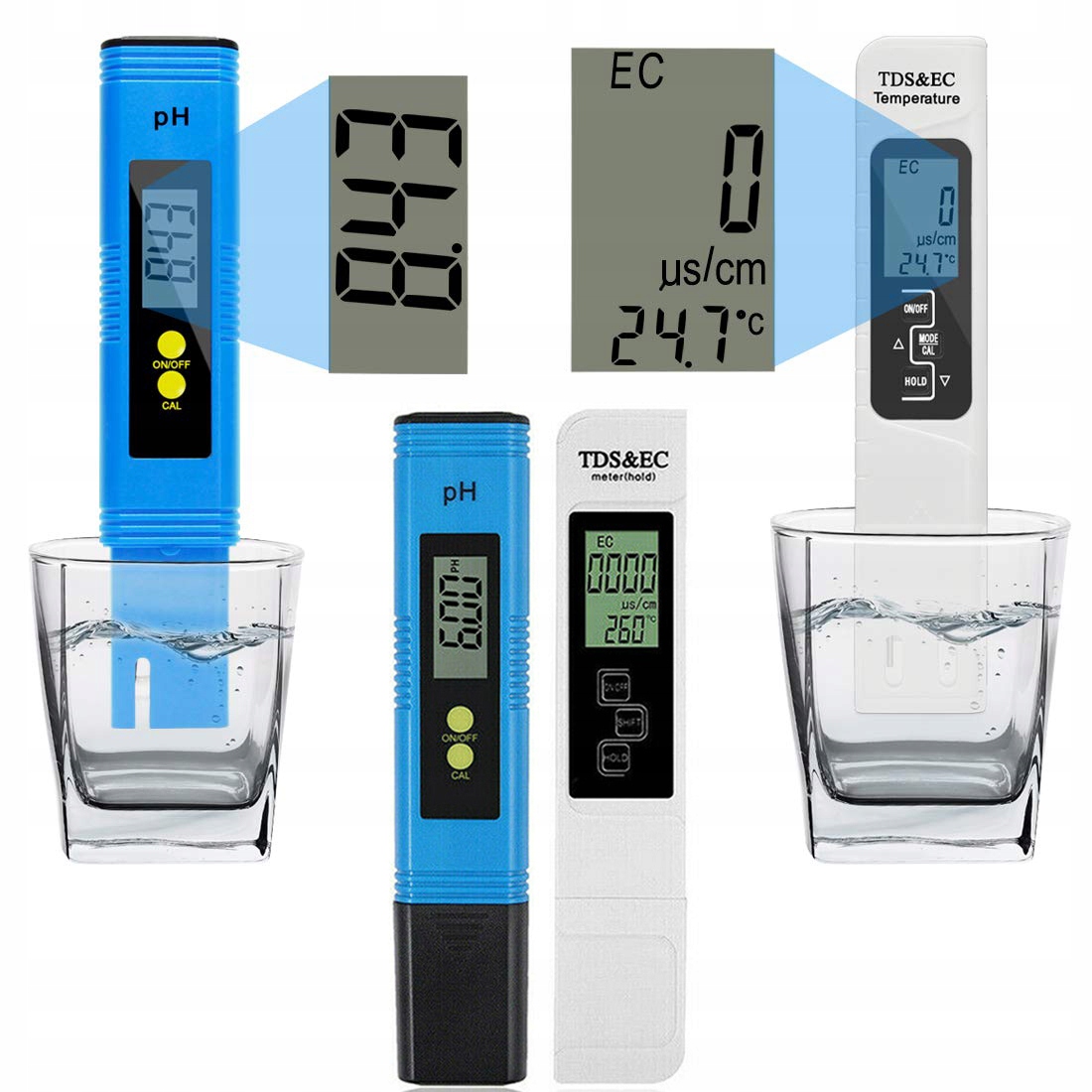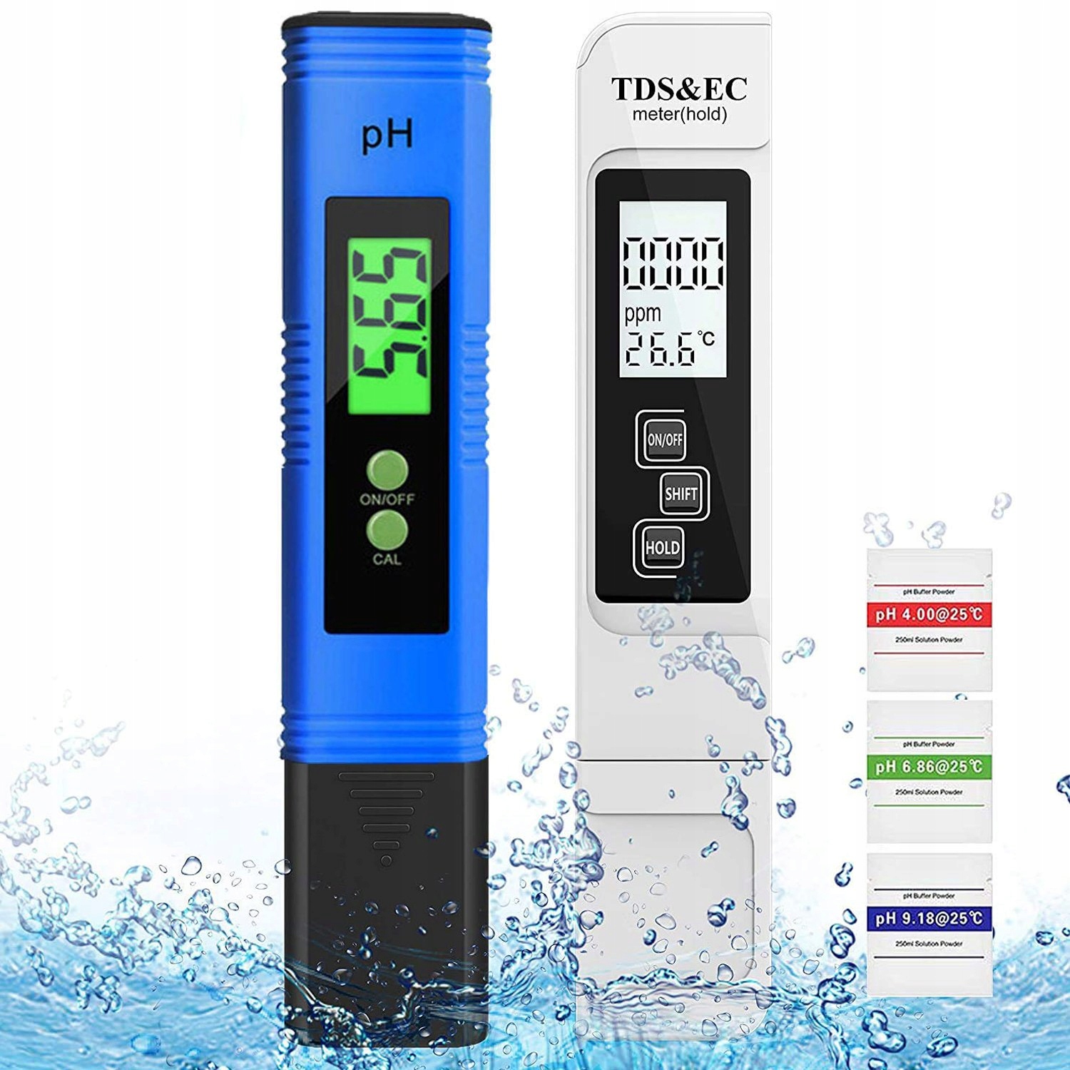 💧[Автоматичне калібрування] - обидва вимірювальні прилади можна відкалібрувати однією кнопкою. Просто піднесіть пристрій до відповідного розчину та натисніть. Через кілька секунд лічильник буде відкалібровано