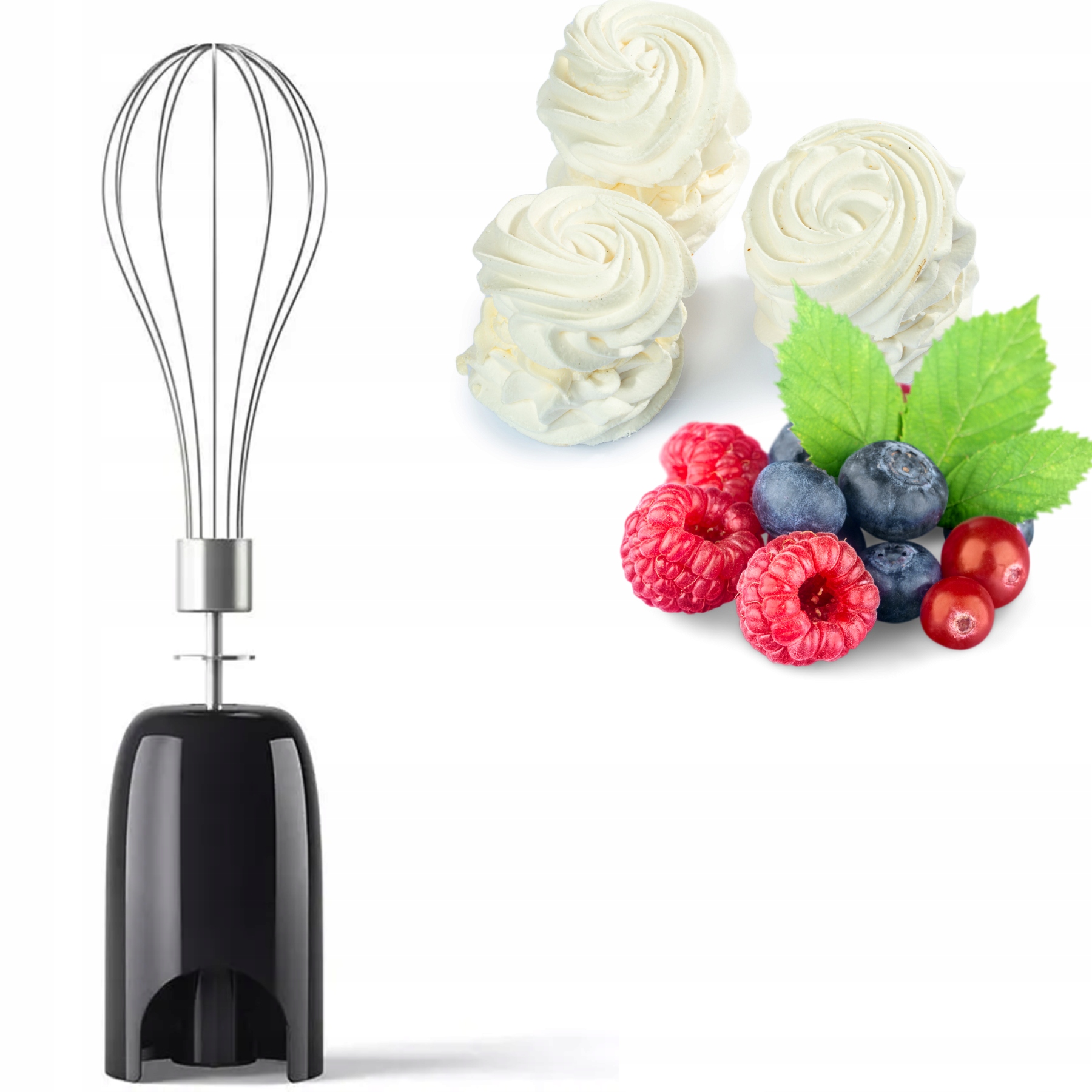 У набір також входить віночок, який ідеально підходить для збивання вершків, приготування гладкого майонезу або ідеальних млинців. Можливість швидкої заміни насадок однією кнопкою дозволяє швидко перемикатися між функціями, що економить час і полегшує роботу на кухні.