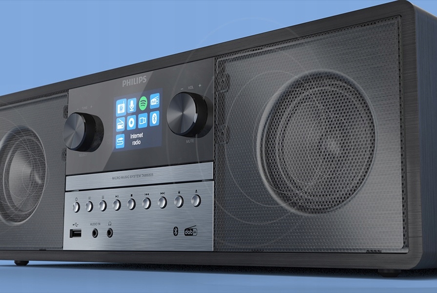 Ця компактна мікросистема «все в одному» з інтернет-радіо, Spotify Connect, Bluetooth і програвачем компакт-дисків відтворює будь-яку музику, яку ви хочете. Ви також можете підключати інші джерела через аудіовхід або USB. Насолоджуйтесь насиченим звуком від мікросистеми, яка підійде майже до будь-якої кімнати!
