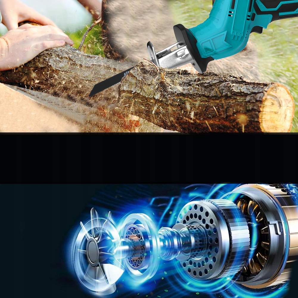 Акумуляторна шабельна пила з акумулятором і зарядним пристроєм, включає в себе два різні пильні полотна для деревини (10TPI*2, 6TPI*4) і 2 металеві пильні полотна. Виберіть пильний диск із доступними параметрами, який можна використовувати для різання деревини, металу, труб ПВХ тощо.