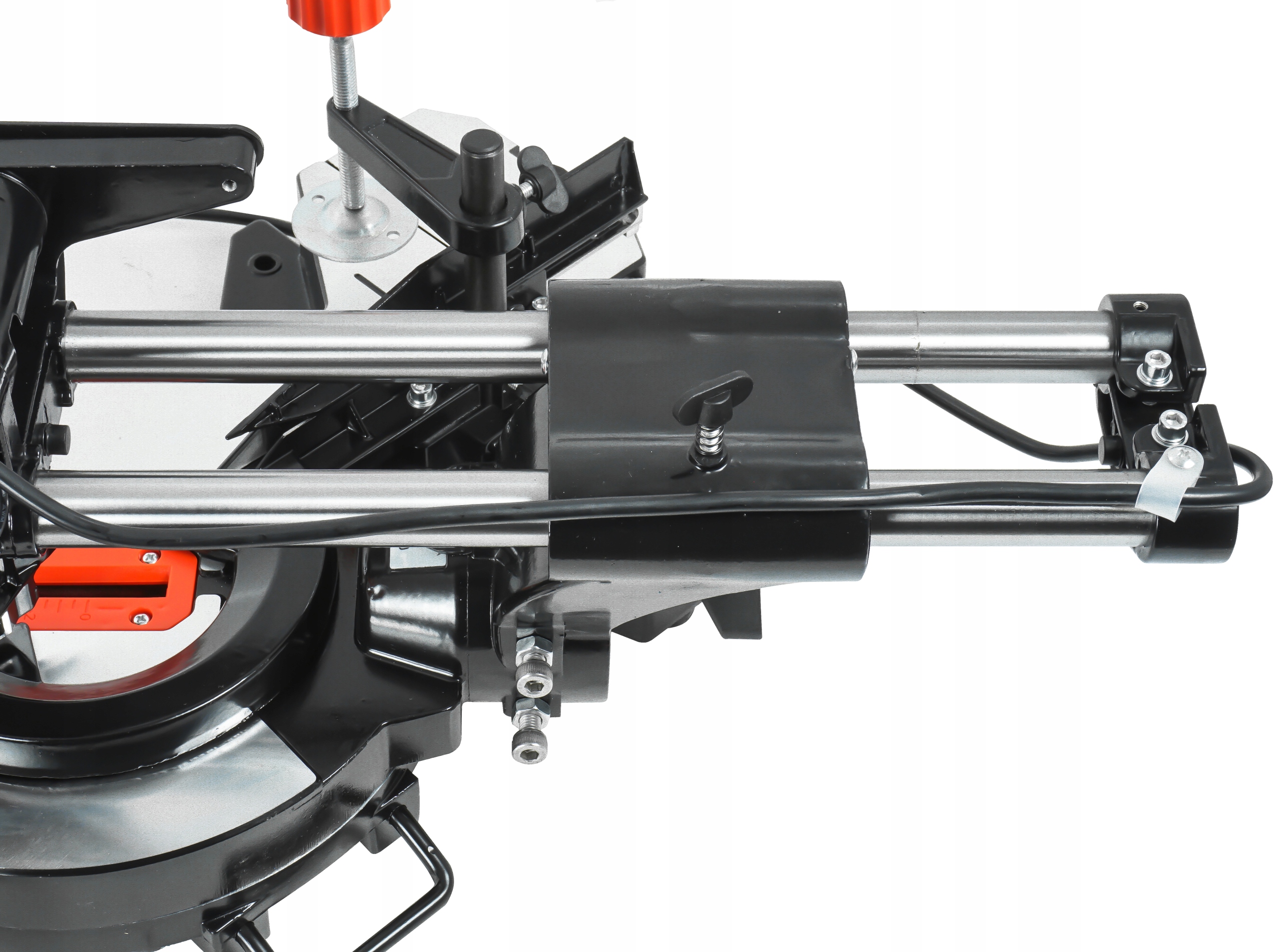 Регульований вертикальний затискач дозволяє фіксувати матеріал таким чином, щоб він не рухався під час різання подачі. Пристрій має два місця кріплення, тому ви можете встановити затискач з лівого або правого боку пристрою.
