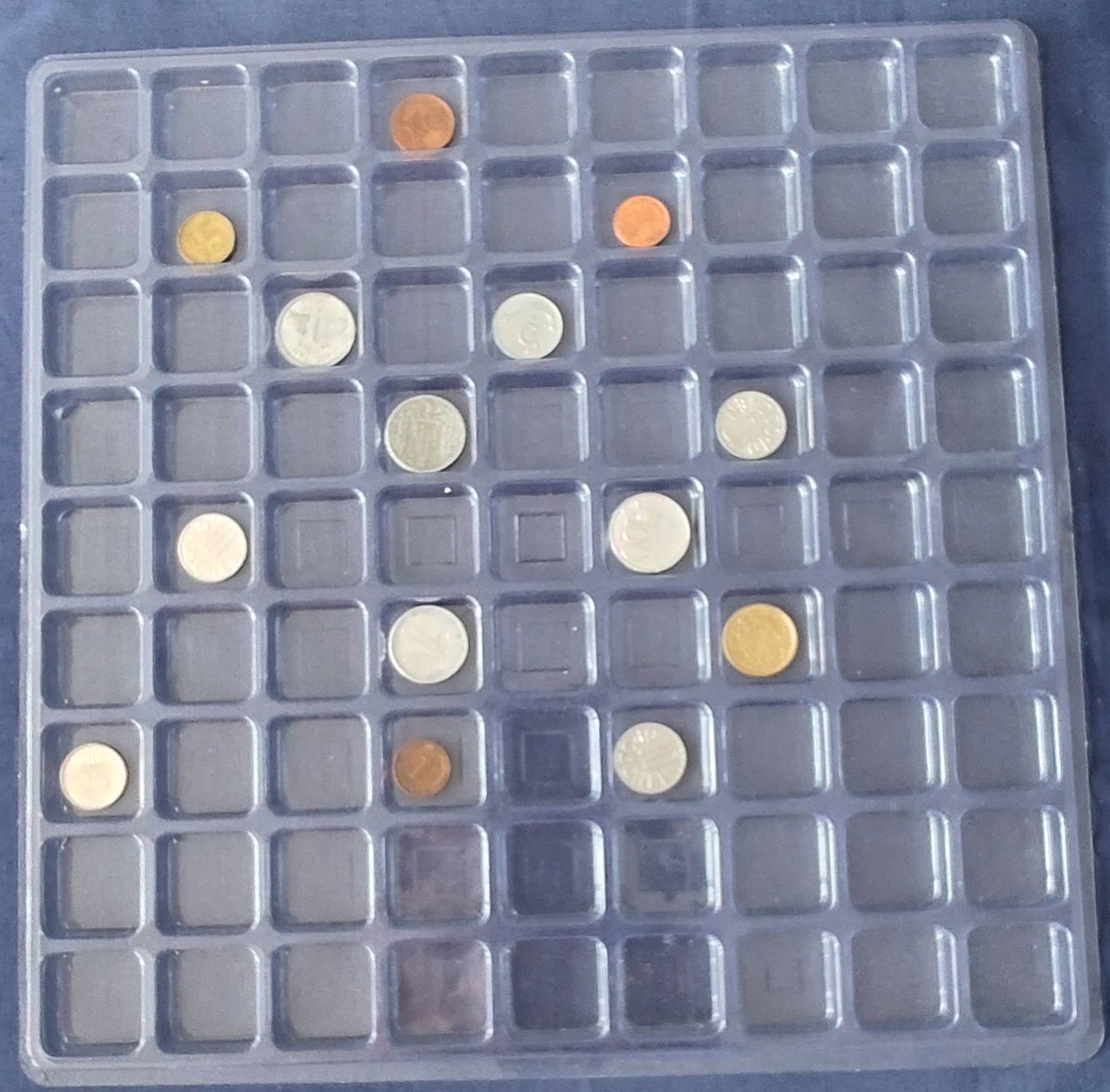 Предметом пропозиції є прозорий пластиковий лоток, який можна використовувати для зберігання монет. 81 виїмка діаметром 27 мм. На лотках можуть бути сліди наклейок, тому що вони з моєї колекції. Ідеально підходить для сортування монет за: Країнам або тематично. Безкоштовна кришка за кожні 10 придбаних штук. Лотки можна штабелювати, тому збір кількох тисяч монет займає мало місця. Не соромтеся купувати.