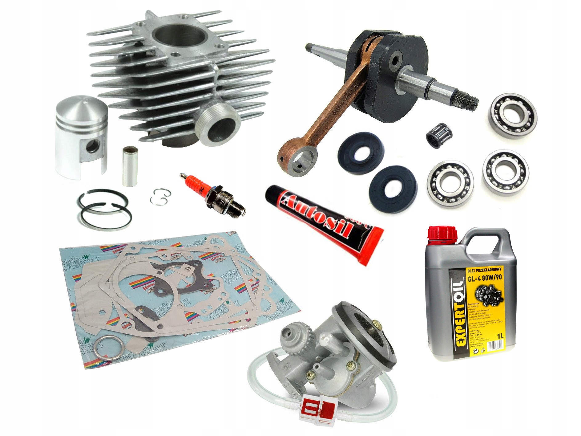 КОЛІНВАЛ З ЦИЛІНДРОМ, КАРБЮРАТОРОМ, ПІДШИПНИКАМИ, ПРОКЛАДКАМИ, УЩІЛЬНЕННЯМИ, СИЛІКОНОМ ТА РЕМІСІЙНИМ МАСЛОМ