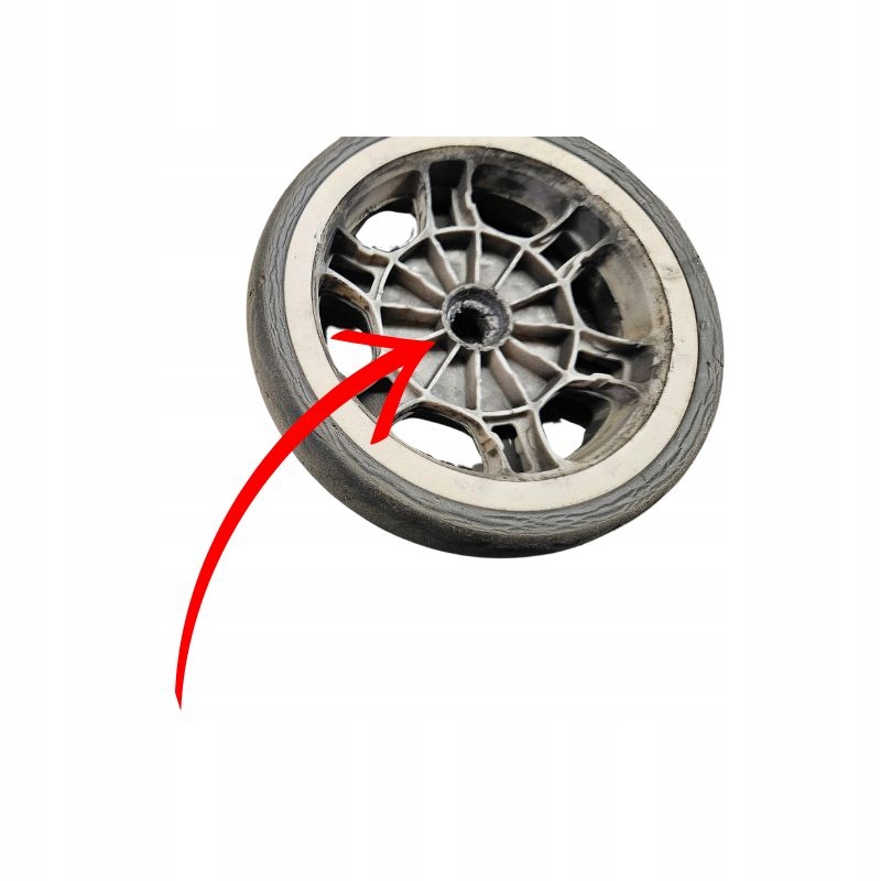 Зовнішня сторона заднього колеса (приклад) – відсутній підшипник, на осі видно зовнішнє кільце – залишки підшипника.