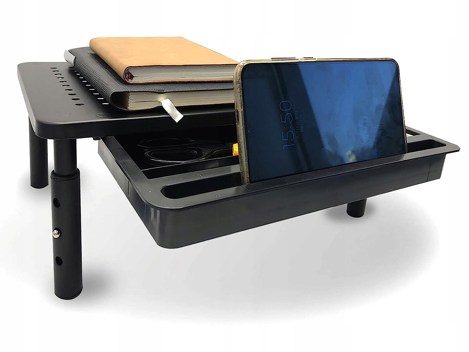 Однією з головних особливостей цієї підставки для монітора є її ящик. У цьому ящику можна зберігати різні дрібниці, такі як ручки, блокноти та інші офісні приналежності. Крім того, шухляда обладнана механізмом, який дозволяє її відкручувати, щоб ви могли зручно налаштувати її відповідно до своїх уподобань і потреб.