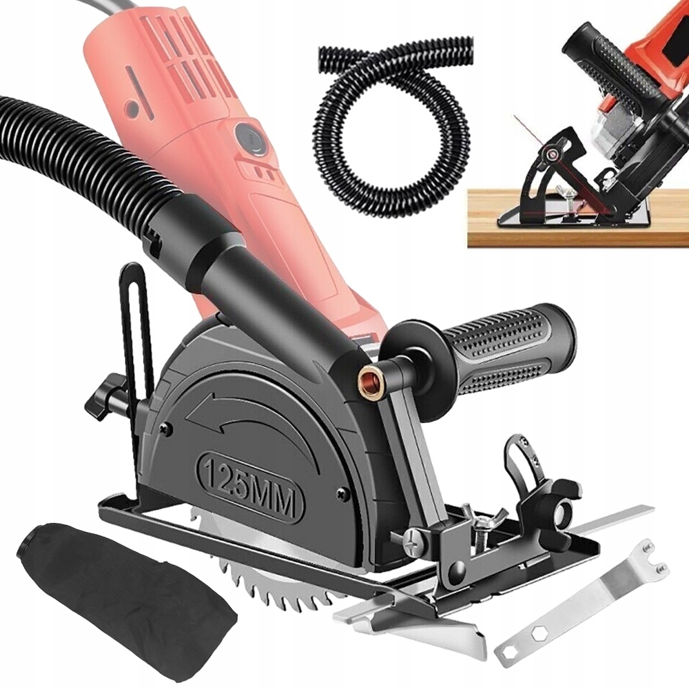 Рукоятка сумісна з кутовими шліфувальними машинами 100-125 мм і може бути оснащена диском діаметром 125 мм. Підходить для різання деревини, алюмінієвих плит, ПВХ труб, плитки та інших матеріалів. матеріал.