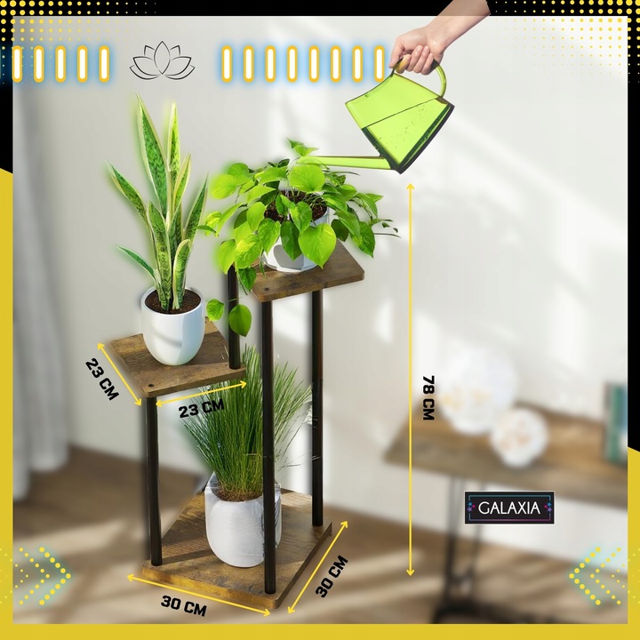 ➡️ Унікальний дует довговічності та стилю! Стійкий металевий каркас підставки для квітів GALAXIA™ поєднується з натуральними дерев’яними полицями, створюючи гармонійну композицію сучасного дизайну та класичної елегантності. Метал забезпечує довговічність, а дерево додає тепло і затишок будь-якому інтер'єру.
