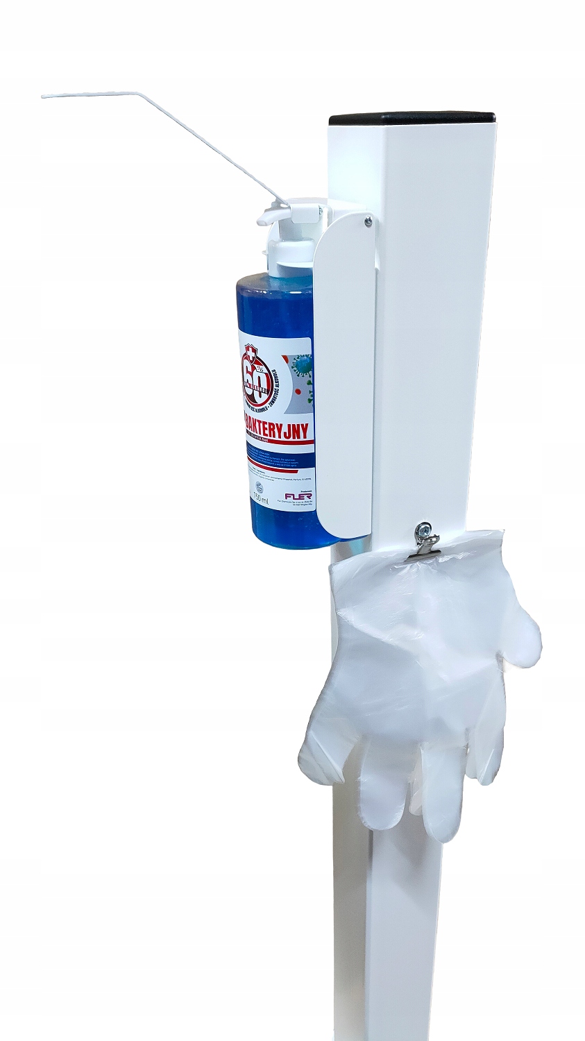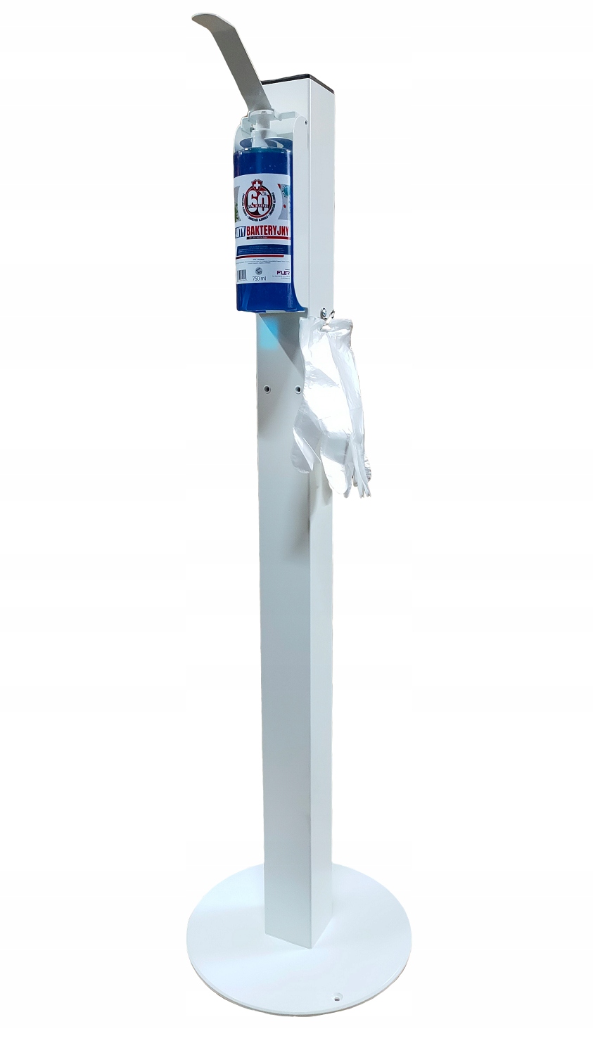 КОМПЛЕКТ: ПІДСТАВКА БІЛА + 1 ШТ. БІЛИЙ ЛІКТЬОВИЙ ДОЗАТОР (ПОВТОРНОГО ЗАПРАВЛЕННЯ) З АНТИБАКТЕРІАЛЬНИМ ГЕЛЕМ 750 МЛ 60% СПИРТУ, МОНТАЖНІ Гвинти, Кріплення в рукавичках + БЕЗКОШТОВНІ ПВХ РУКАВИЧКИ!