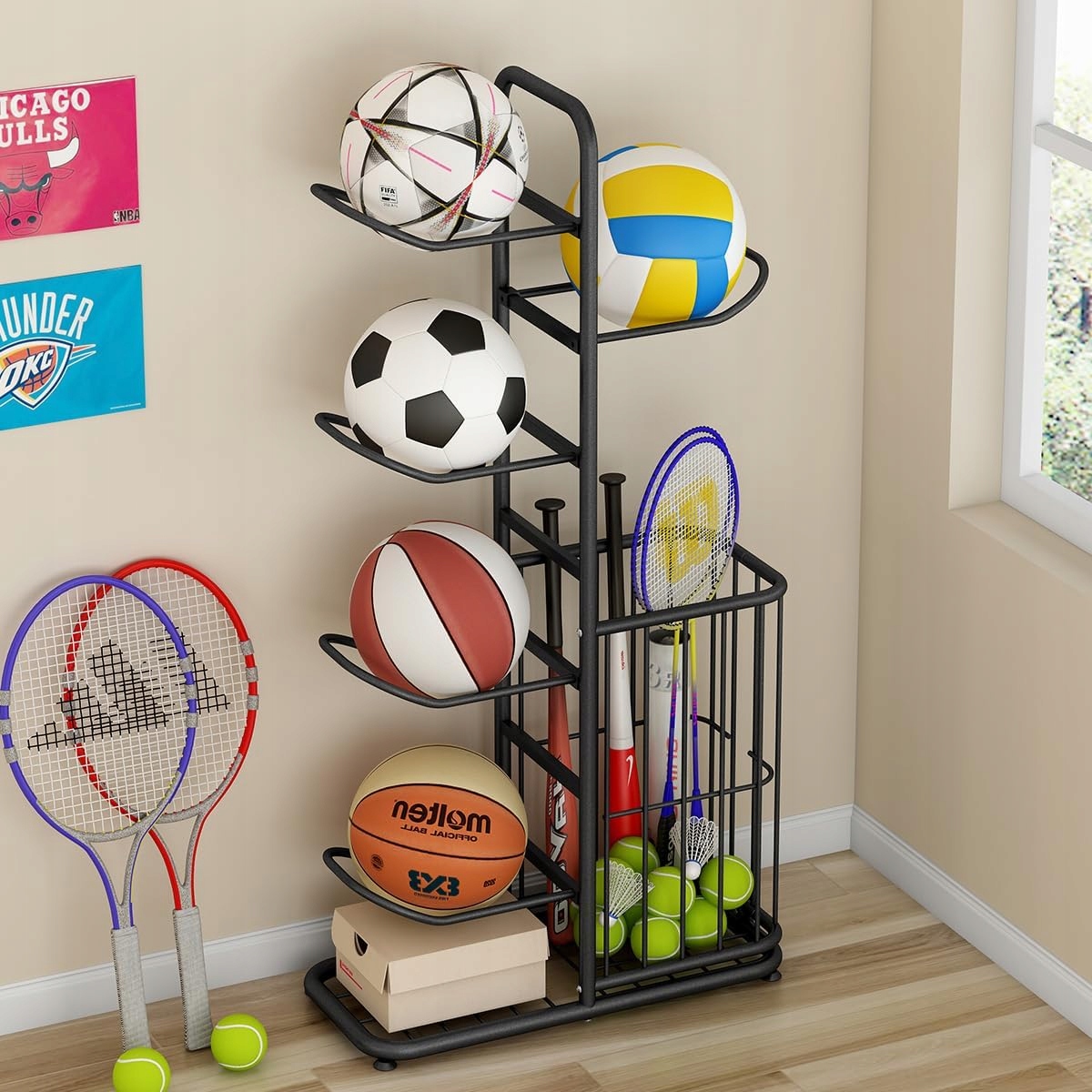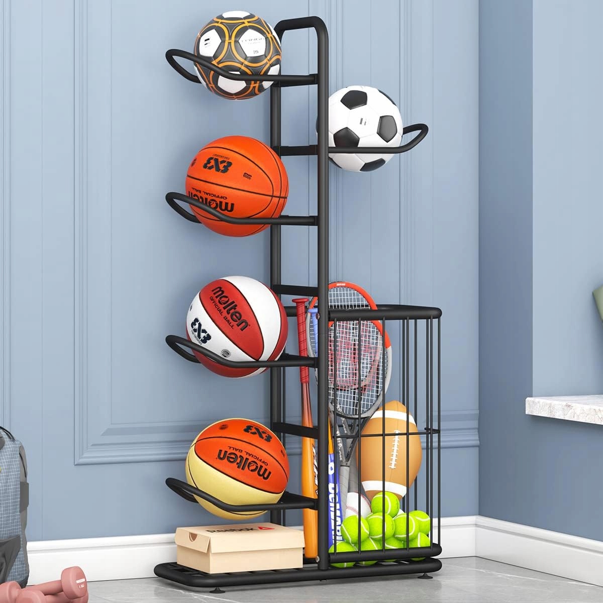 Цей органайзер для спортивного спорядження вміщує до п’яти повнорозмірних м’ячів, включаючи баскетбольні, футбольні та волейбольні. Тут також можна легко зберігати інший спортивний інвентар чи іграшки.