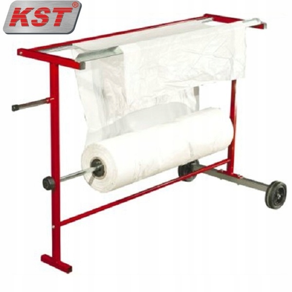 Візок для монтажу фольги в рулоні стандартних розмірів. Оснащений великими колесами для зручного переміщення по підлозі майстерні. Направляюча різака фольги дозволяє рівномірно і зручно розрізати будь-яку частину фольги. Візок дозволяє одній людині за короткий час підготувати автомобіль до фарбування.