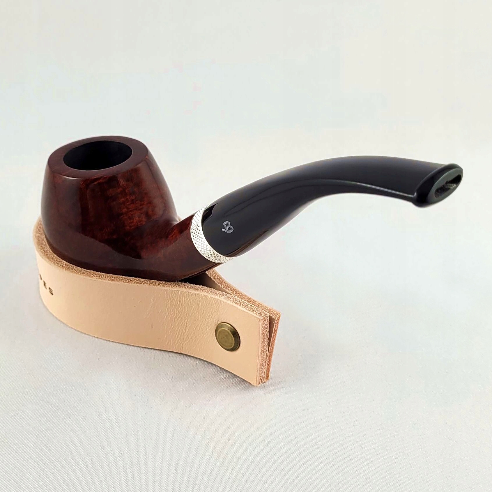 Шкіряна підставка для люльки, гарний гаджет для любителів люльки. Невеликі розміри, компактна форма і натуральний матеріал є його перевагами. Він має фірмовий знак Mr Bróg Pipe Studio. Вказана ціна не включає труби, які видно на фото. Розміри: довжина 9,5 см / ширина 2,0 см / товщина приблизно 0,5 см