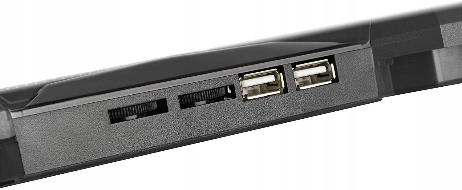 Він живиться від кабелю USB, у верхній частині пристрою є дві ручки, кнопка ліворуч керує двома нижні вентилятори, тоді як один праворуч контролює трійку верхніх.