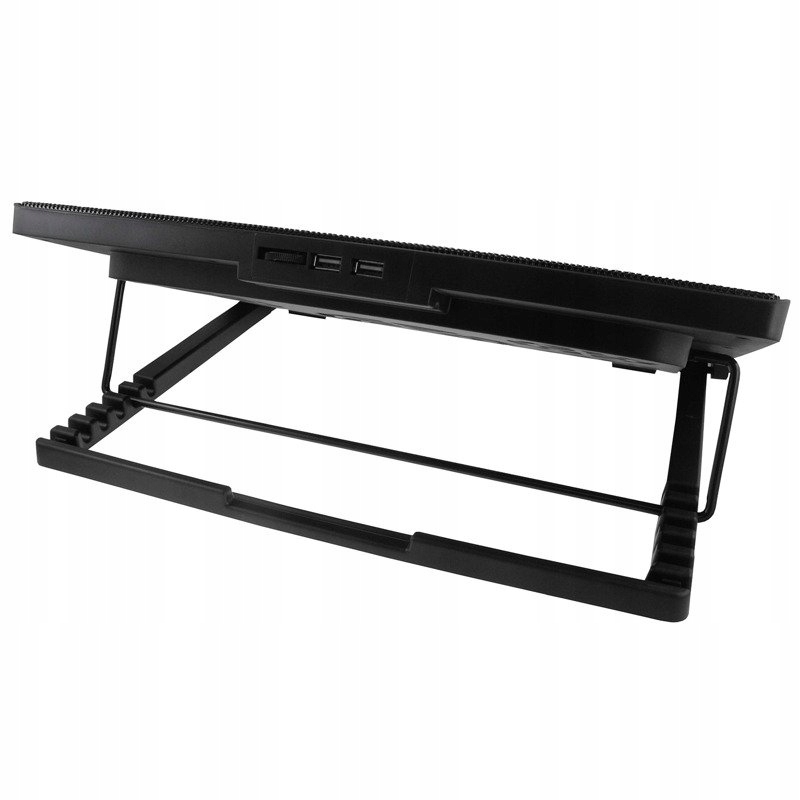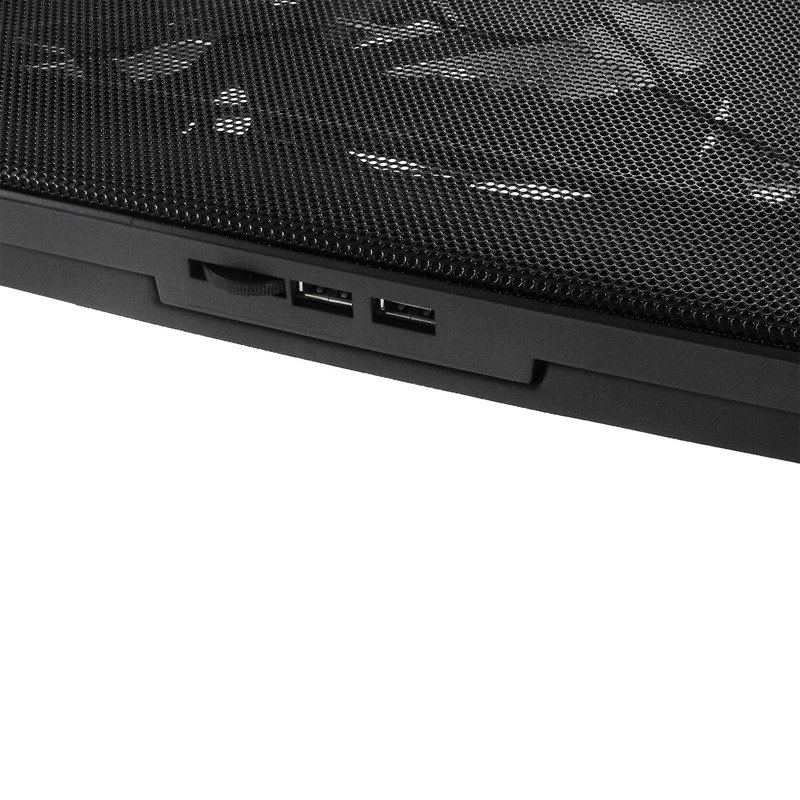 Перенесіться у світ свіжого повітря! Вбудовані вентилятори створюють холодне повітря, всмоктуючи його знизу та направляючи до нагрітої нижньої частини ноутбука. Встановіть швидкість вентилятора, перемістивши потенціометр вправо. Охолоджувальна панель має вбудований регулятор швидкості. Встановіть швидкість вентилятора на свій смак Ви граєте в ігри? Потрібна додаткова потужність охолодження? - встановити потенціометр на MAX. Завдяки регулюванню кута нахилу ви можете регулювати нахил ноутбука, що ідеально підходить для забезпечення максимального комфорту саме для вас.