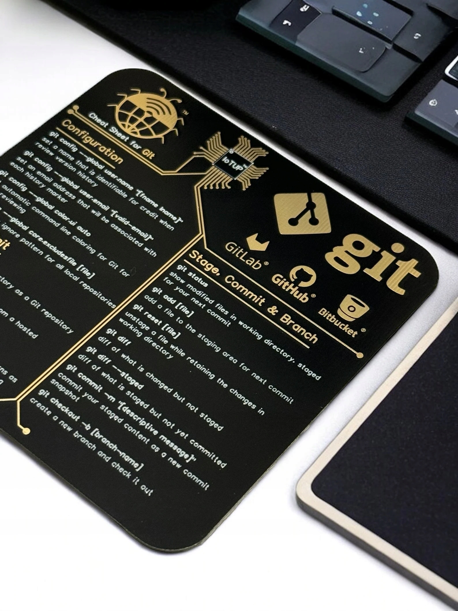 Ця накладка є ідеальним поєднанням стилю та практичності на будь-якому робочому місці. Ця унікальна деталь зробить ваш стіл охайним, забезпечуючи швидкий доступ до найважливіших команд Git. Незалежно від того, п’єте ви каву чи пишете код, цей блокнот збереже ваше робоче місце охайним і функціональним.
