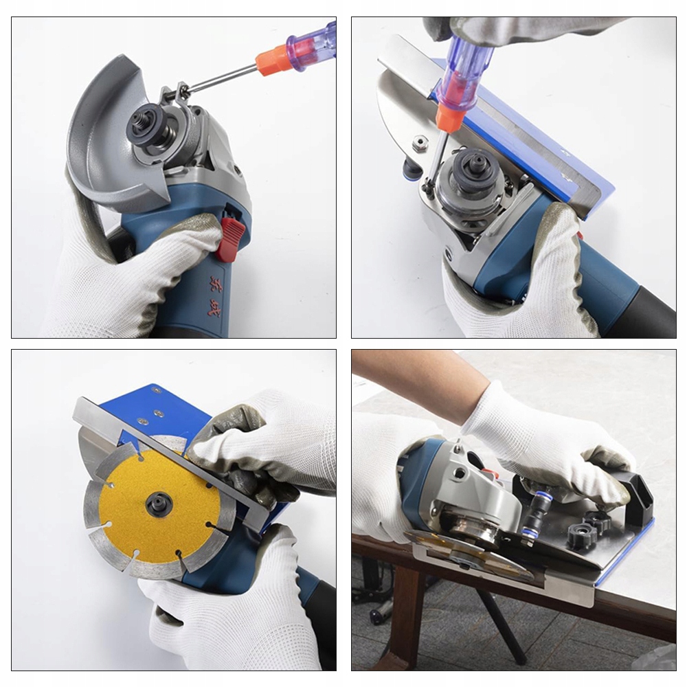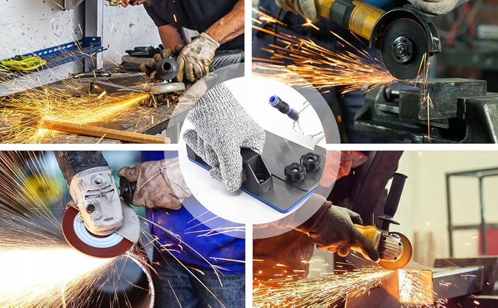 - Оснащений надійною затискною системою, він міцно утримує кутову шліфувальну машину на місці та забезпечує стабільне робоче середовище завдяки мінімізації вібрації.