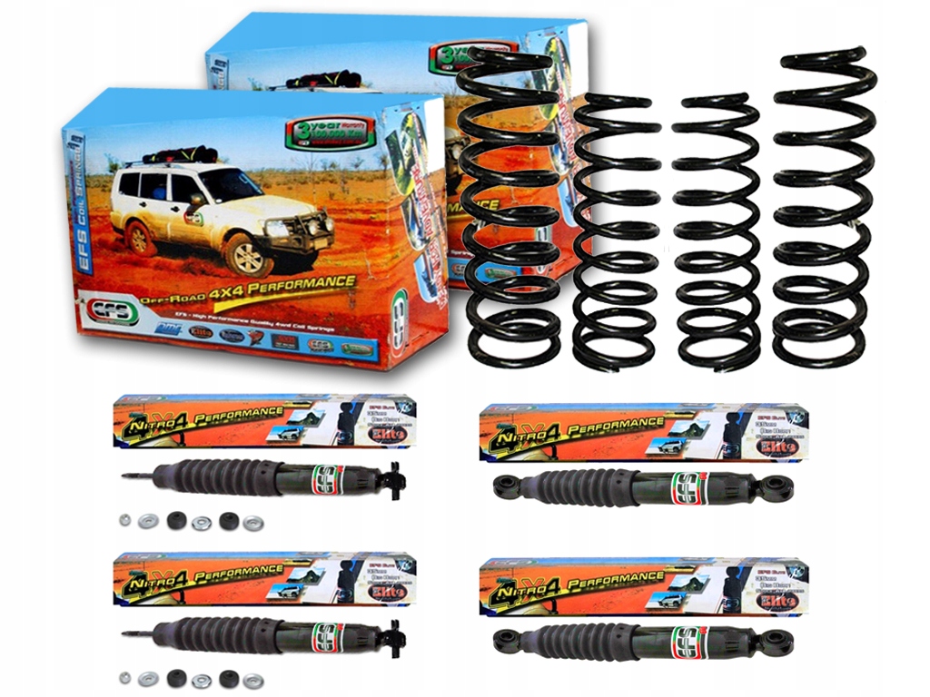 Удосконалена підвіска 4-х коліс — це продукт високого стандарту, який довів свою цінність у змаганнях 4×4 в Австралії та багато разів був доведений до межі своєї витривалості ентузіастами позашляховиків у всьому світі. Підвіска EFS — це інтегрований набір пружин, амортизаторів та інших компонентів, які працюють разом, щоб отримати ще кращі характеристики водіння на дорозі та поза нею. Компанія EFS розробила та розробила високоякісну систему підвіски, адаптовану до екстремальних умов бездоріжжя в Австралії. Асортимент продукції EFS постійно вдосконалюється та піддається найжорсткішим випробуванням на спонсорованих змагальних автомобілях. Продукти торгової марки EFS забезпечують чудову продуктивність на бездоріжжі та бездоріжжі.