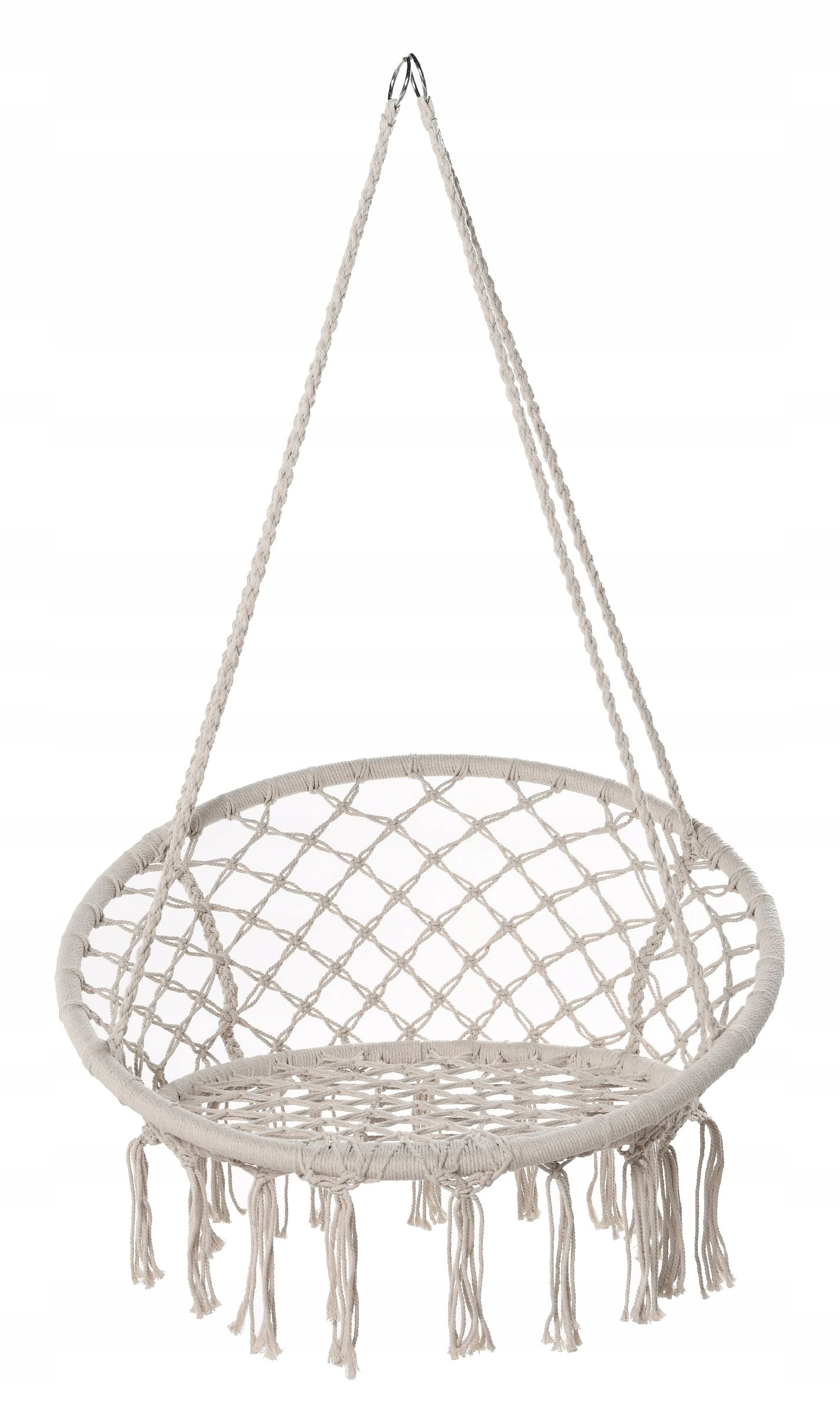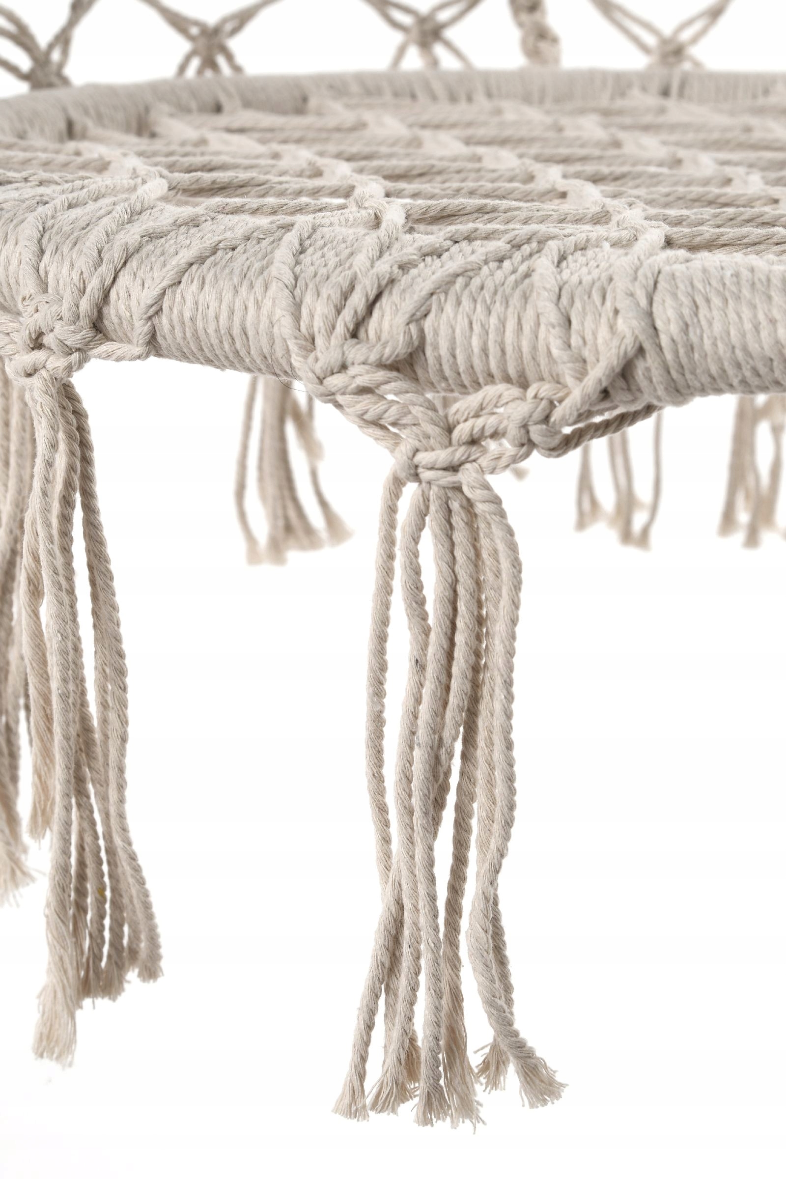Якісні підвісні гойдалки в стилі бохо виготовлені з 2 металевих обручів і стійкої до натягу струни у вигляді переплетення. Спинка оснащена 4 окремими мотузками, які можна підвісити на один або два гачки.