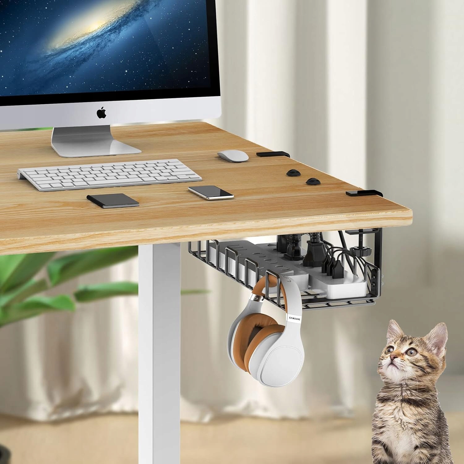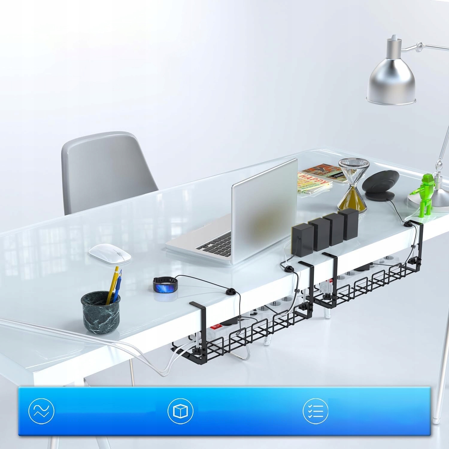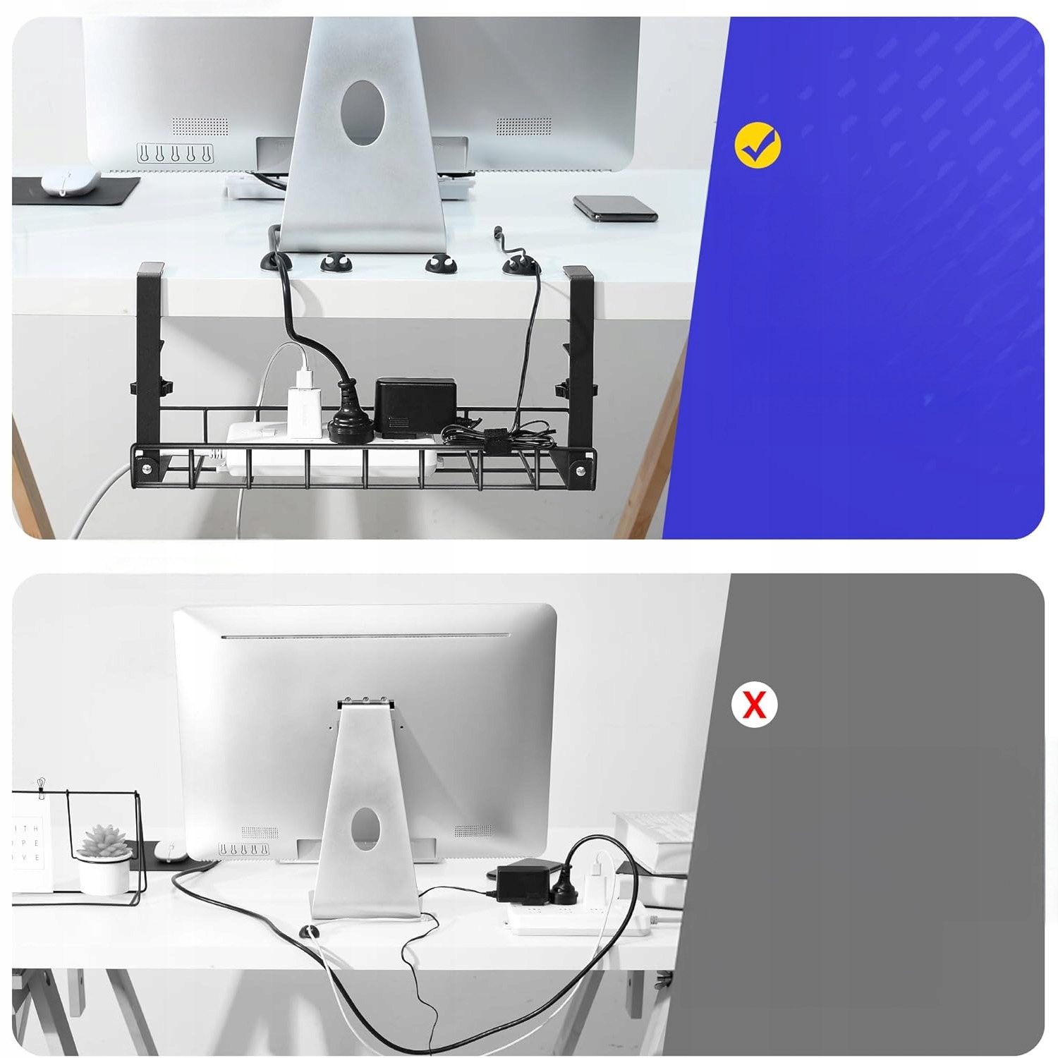🖥️ Завдяки нашому металевому підстільному органайзеру ви будете підтримувати ідеальний порядок між шнурами живлення, подовжувачами та адаптерами.