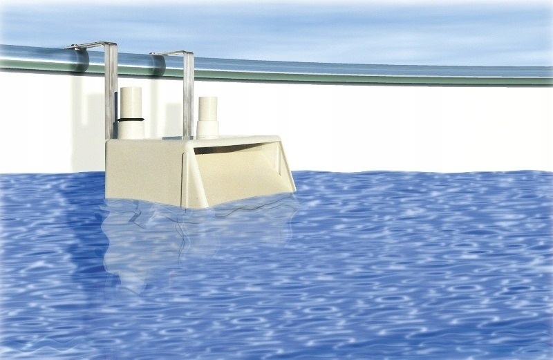 Підходить для будь-яких басейнів, але особливо для вже побудованих. Це скімер призначений для дооснащення. Він обладнаний зворотним потоком до басейн діаметром 32 мм. Також можливе підключення миючі пристрої (пилососи) зі шлангом DN 32 мм.
