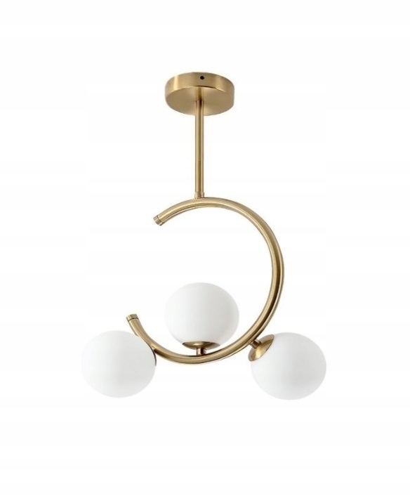 Стельовий світильник - золотого кольору люстра з 3 білими плафонами.