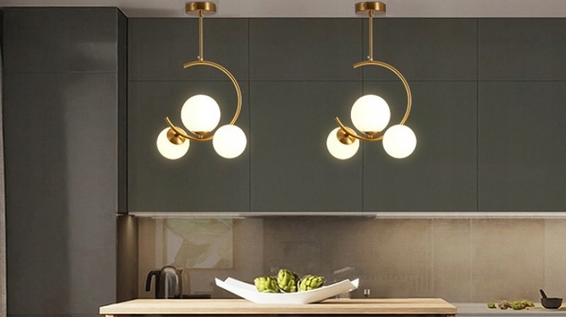 ПІДВІСНИЙ СТЕЛЕВИЙ СВІТИЛЬНИК, ЛЮСТРА, 3 ЗОЛОТИХ СВІТЛОДІОДНІ КУЛІ