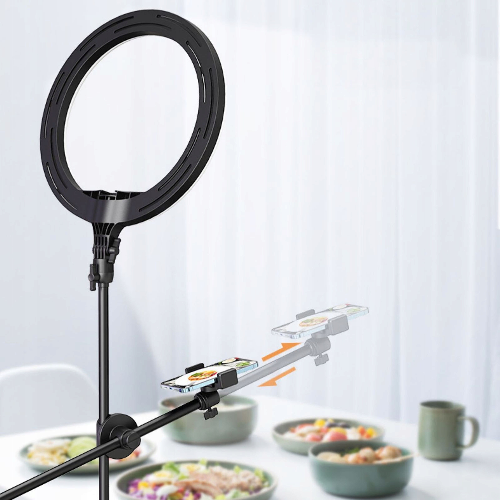 1. Гнучкість: рука та тримач телефону регулюються, ідеально підходять для запису процесу приготування їжі, процесу фарбування та освітлення для відеоконференцій.
