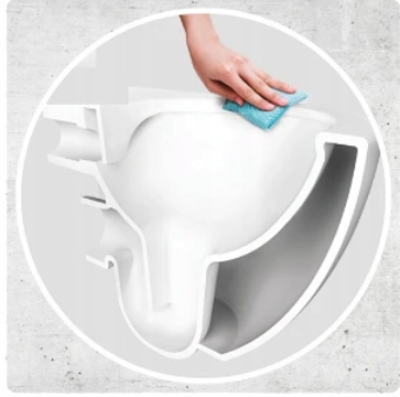 Миска без бортика, що сприяє чистоті та гігієні . Відсутність згорнутого внутрішнього краю означає, що бруд, який важко видалити, не накопичується в чаші. Чаша зручної обтічної форми при чищенні просто протирається м'якою тканиною, а при ополіскуванні струмінь води легко обтікає всю її внутрішню поверхню.