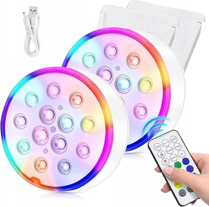 Створіть унікальну атмосферу у своєму басейні, джакузі чи акваріумі за допомогою підводного світлодіодного освітлення RGB із можливістю заряджання через USB. Цей набір із 2 сучасних ламп пропонує повну водонепроникність IP68, 13 яскравих світлодіодів із збільшеною потужністю та радіочастотне дистанційне керування, яке дозволяє зручно керувати кольорами та режимами з будь-якого місця.