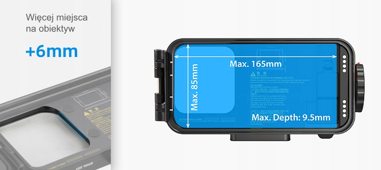 - Внутрішні розміри: 165 x 85 x 9,5 мм (максимальний розмір телефону)