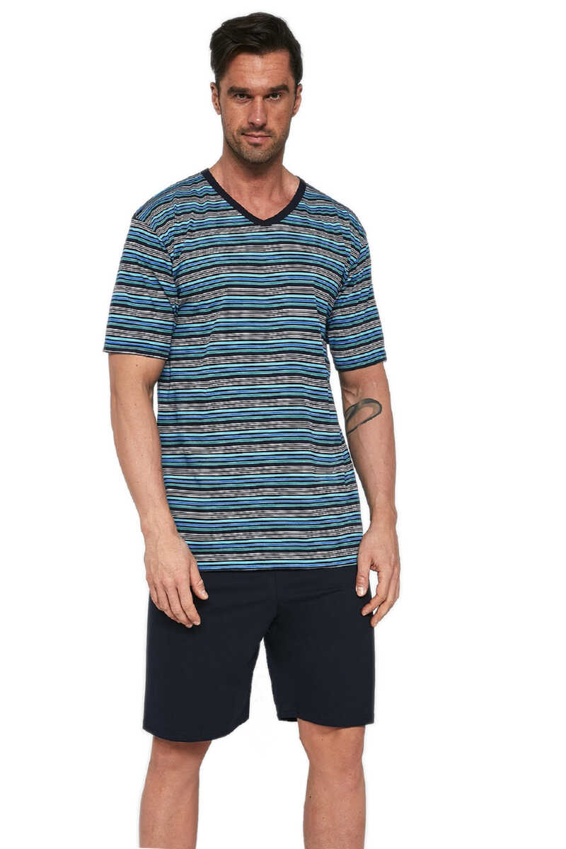 Класична літня чоловіча піжама з короткими рукавами та шортиками. Принт на світшоті класичний, прості смужки. V-подібний виріз оброблений м'якою обробкою. Комплект доповнений зручними шортами. Піжама виготовлена з високоякісного матеріалу, приємного на дотик і ніжного до шкіри. Піжама була запакована в естетичну коробку. Також підійде як практичний подарунок.