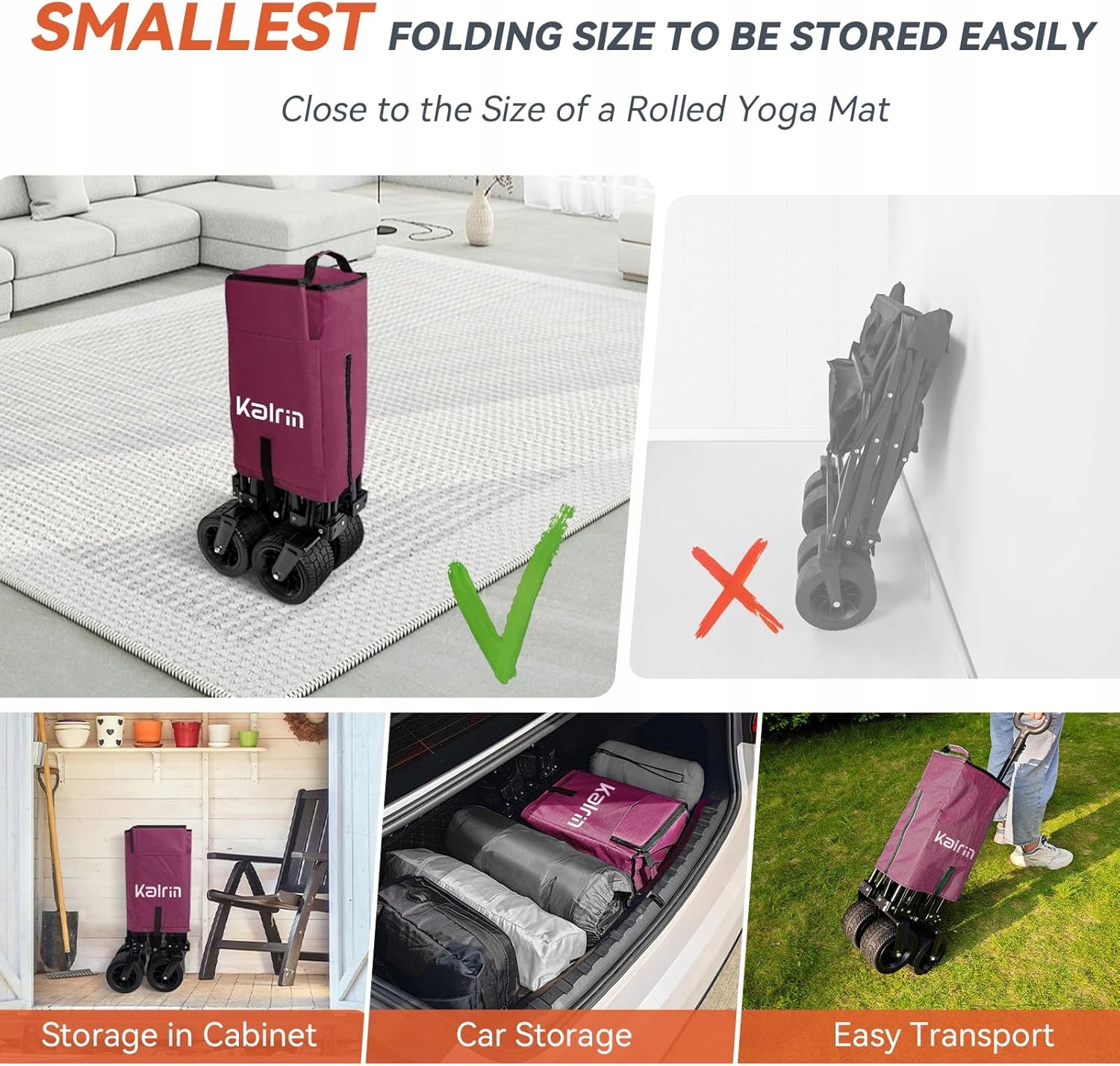 Отримайте максимальну зручність під час кожної поїздки або садової роботи завдяки інвалідному візку Калріна ! З величезною потужністю 200 л, міцною рамкою та поза дорогою колеса, ця коляска буде ідеальною на пляжі, кемпінгу, шопінгу, спортивних заходах та в саду.