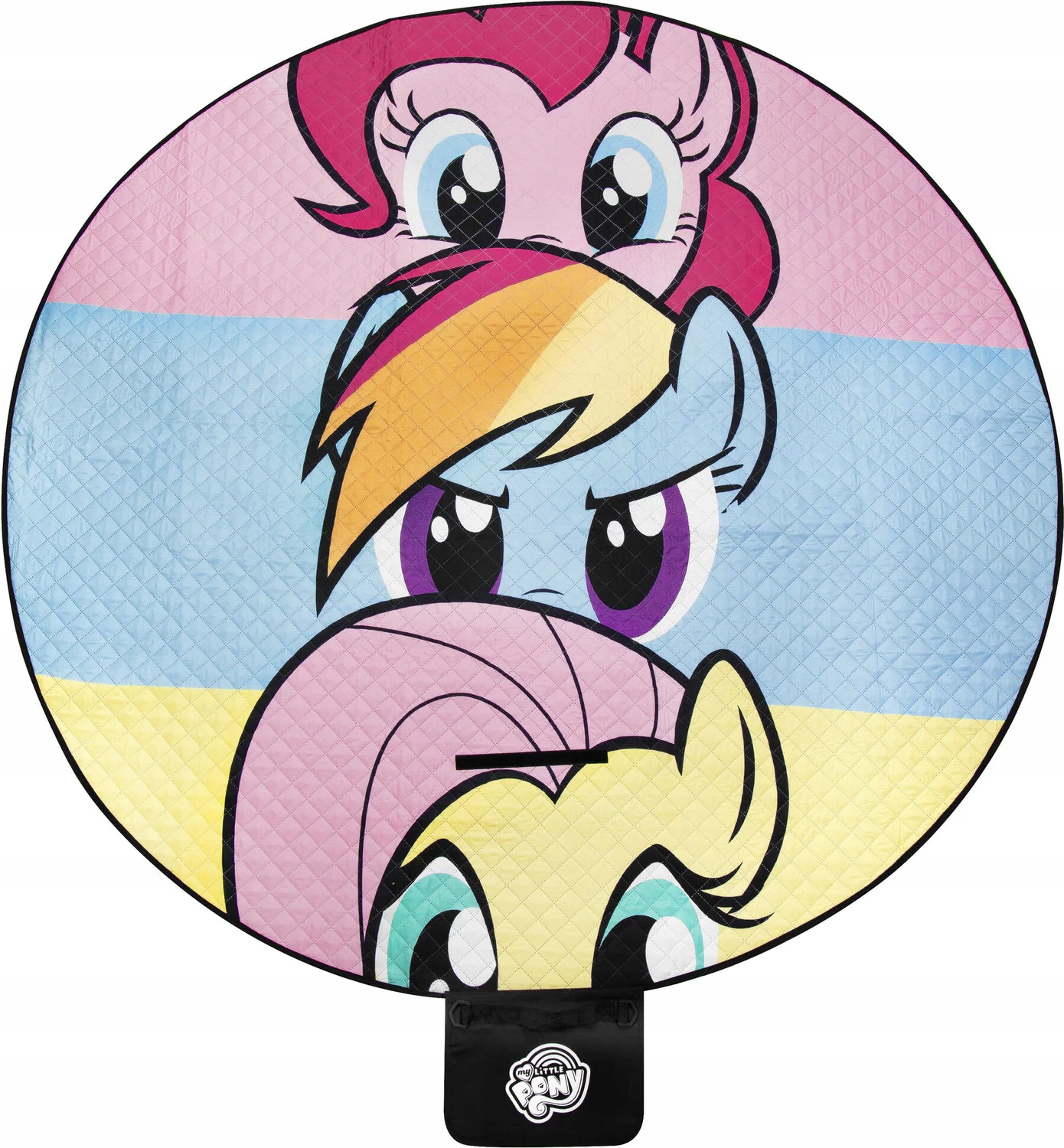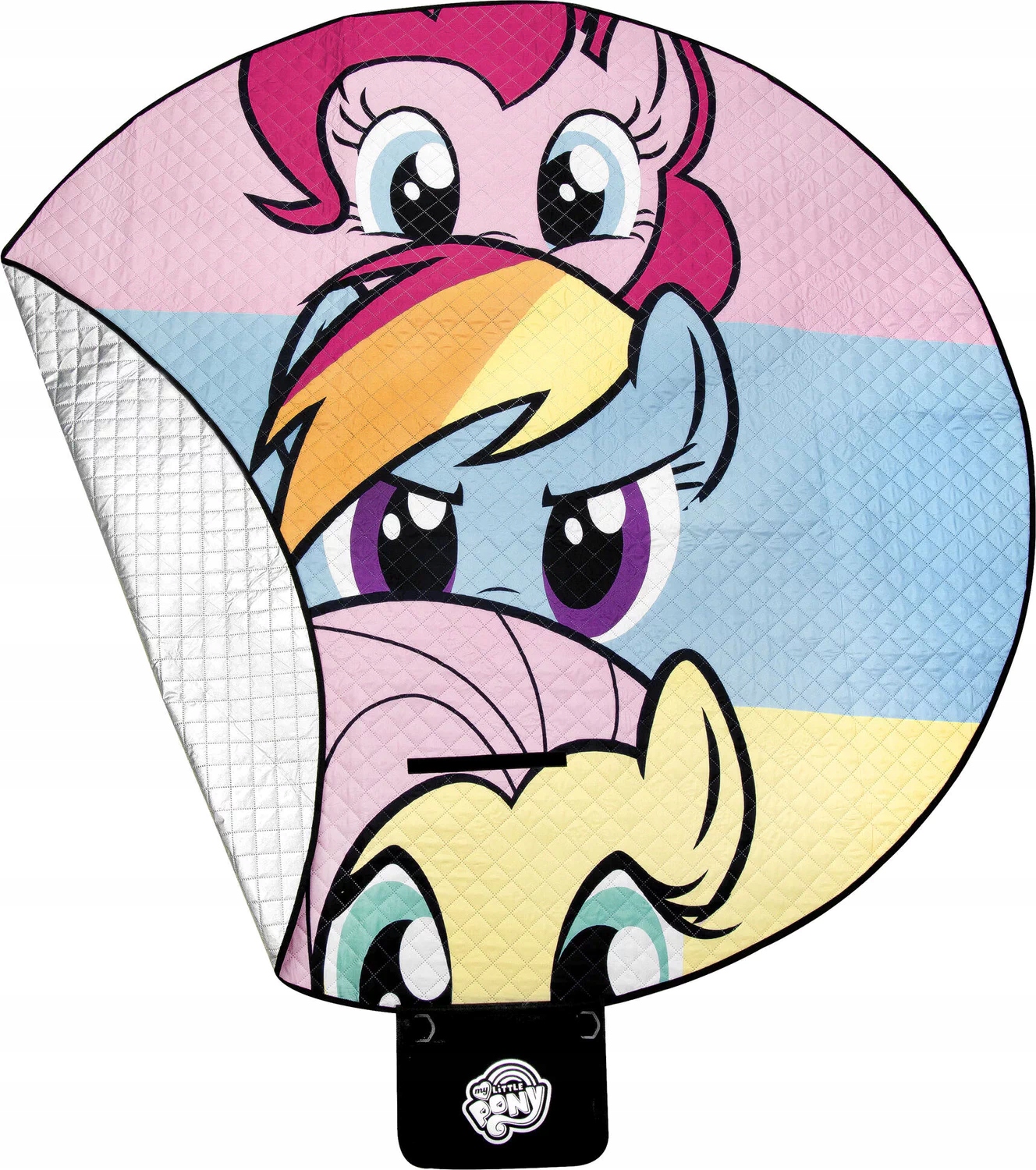 Кругле будівництво має діаметр 150 сантиметрів . Просторова ковдра ідеально підходить для сімейних подорожей до парку або ігор у саду. Алюмінієве дно легко очищається, матеріал також забезпечує чудову ізоляцію перед температурою заземлення. Він складається з невеликим розміром, який у поєднанні з низькою вагою полегшує зберігання та транспортування. Прикріплений ремінь регулювання робить ковдру комфортно висить на плечі, як сумка. Найбільша перевага - барвистий дизайн з персонажами мого маленького поні мультфільму. Суцільна продуктивність означає, що модель тривалий час зберігатиме зовнішній вигляд та якість.