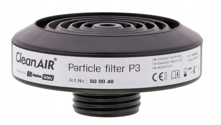 Фільтр підходить для частин обличчя та фільтруючих вентиляційних пристроїв від MALINA CLEANAIR, а також обладнання від інші виробники, сумісні з очисними елементами з різьбленням 40 мм. аерозолів, туманів, мікроорганізмів (бактерій, вірусів, ферментів, грибків), а також радіоактивних часток.