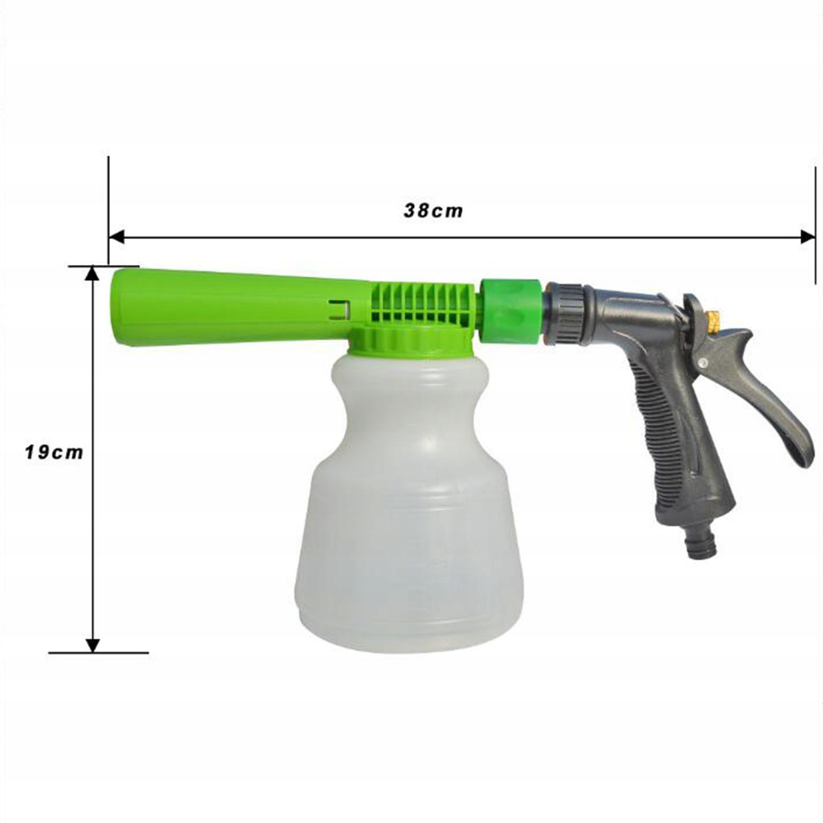 Підходить: зі стандартною конструкцією з’єднання підходить для більшості стандартних садових шлангів і кранів, легко подає воду до шланга та миттєво утворює піну.