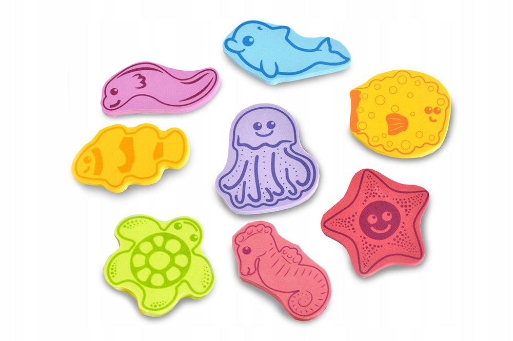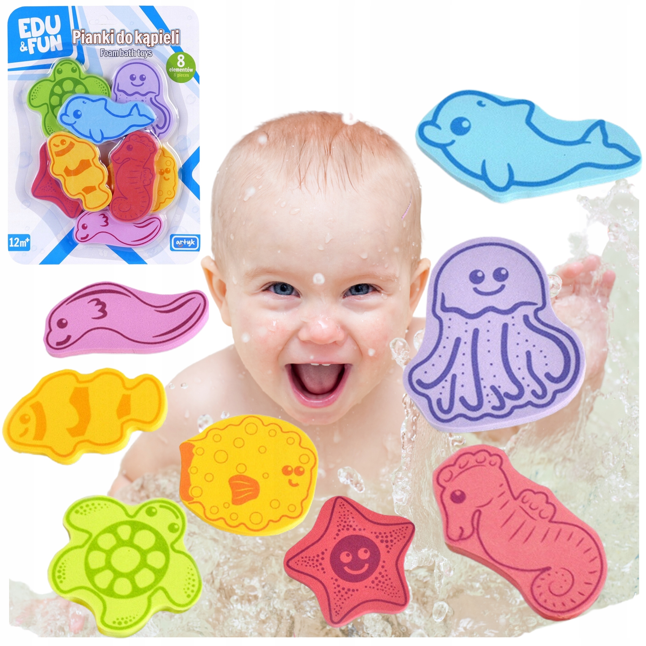 1️⃣ Різнокольоровий: У набір входить аж 8 пінопластів різних яскравих кольорів. Це привертає увагу малюка і робить купання більш привабливим і веселим.