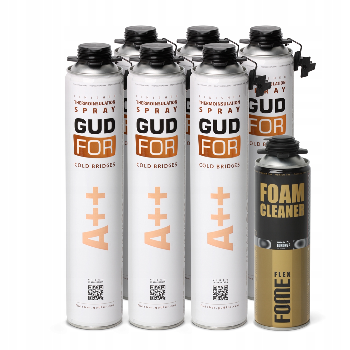 Спрей-теплоізоляція GUDFOR A++, ємність 850 мл х 6 шт. + Очищувач піни 500 мл