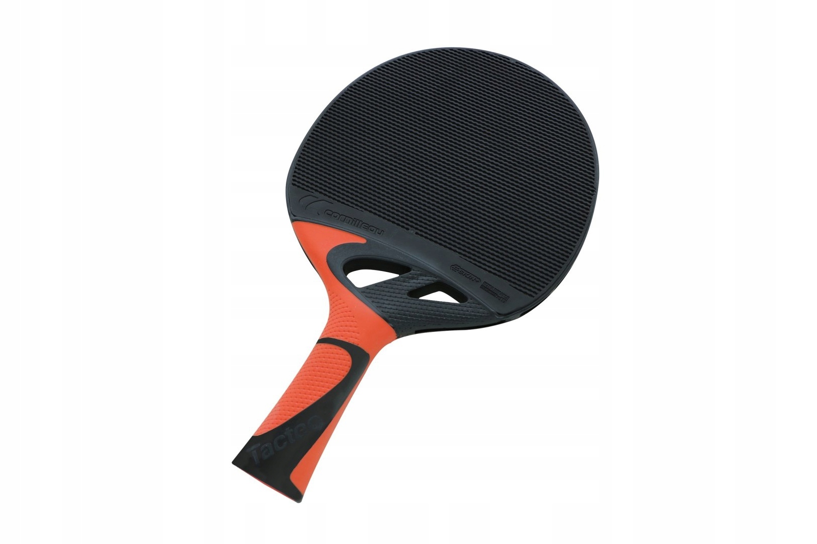Tacteo 50 - це інноваційна ракетка від відомої французької компанії Cornilleau. Виготовляється з матеріалів, які мають високу стійкість до зовнішніх факторів. Полімерне лезо ракетки являє собою суцільний сердечник, що гарантує його високу стійкість до ударів, УФ-променів і вологи.