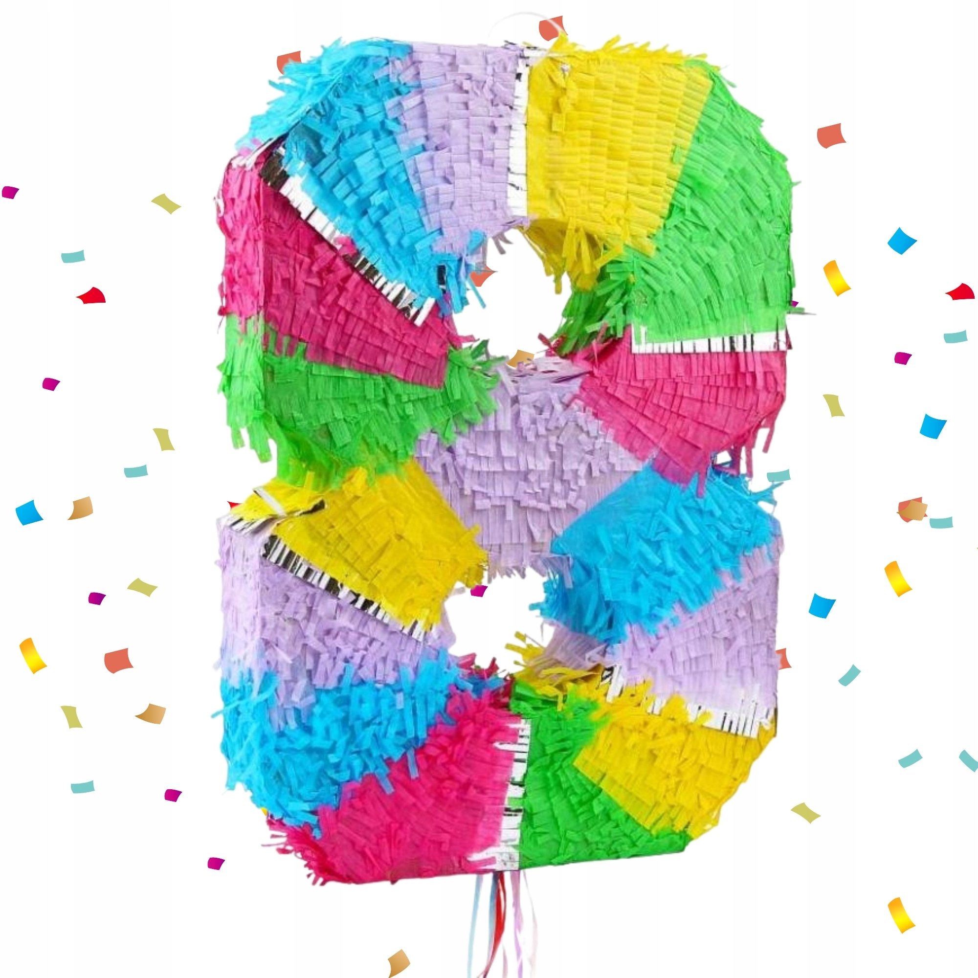 Ця красива піньята у формі цифри "8" - пастельні кольори + великий розмір 50 × 35 × 7,5 см - чудовий вибір для вечірок, дитячі свята, дні народження та інші радісні моменти.