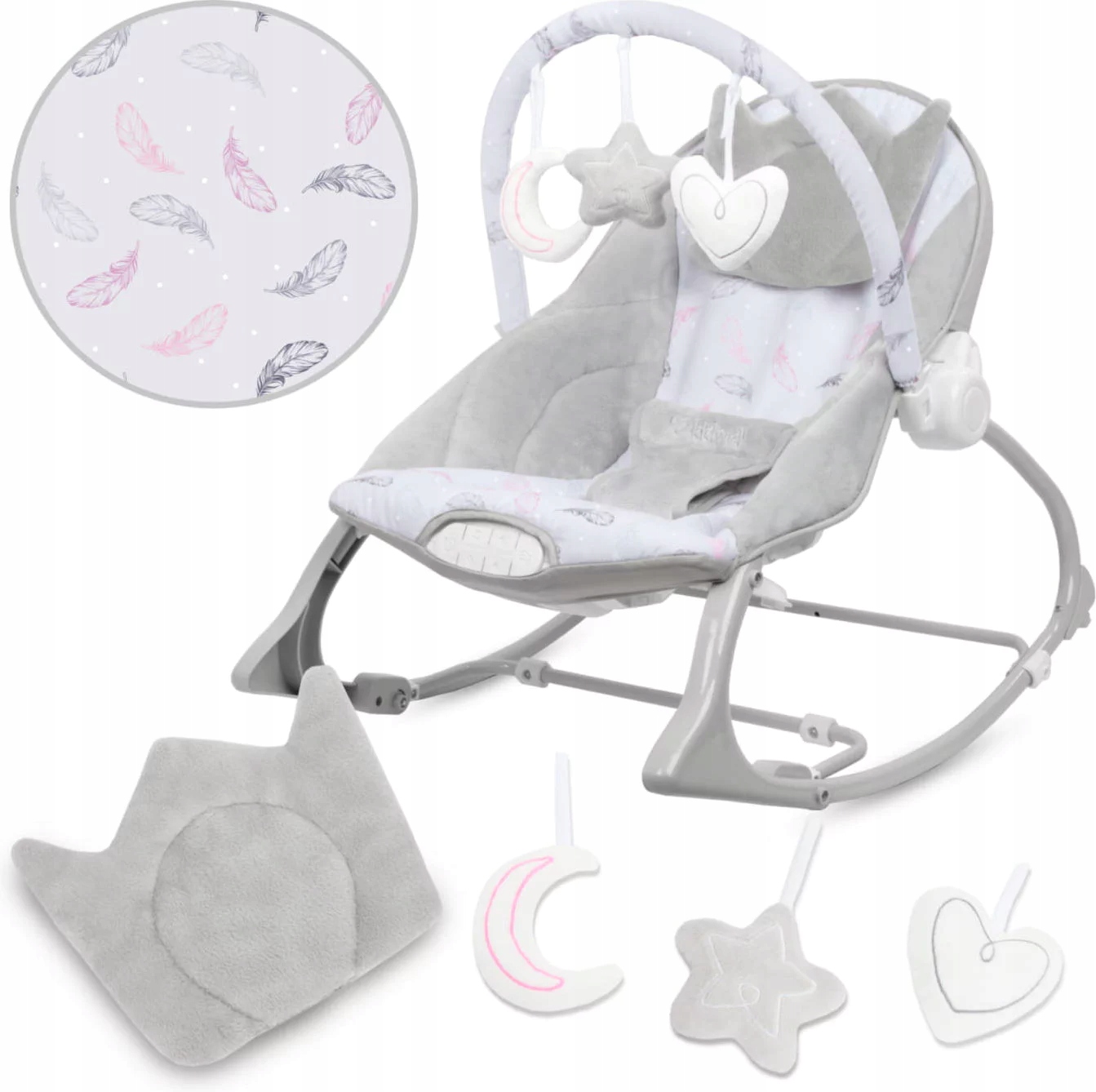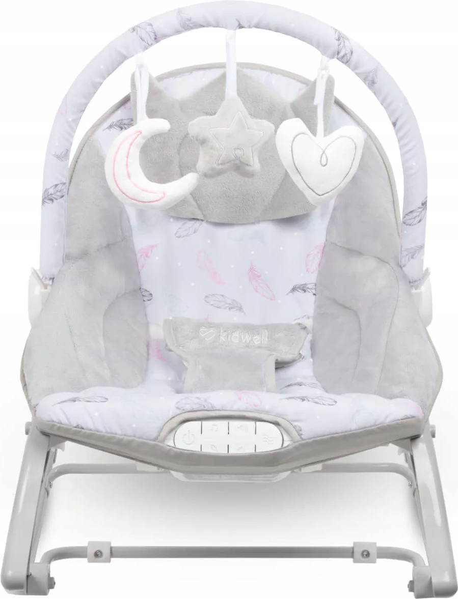 Піно Кідвелл Бужакчек - це приємне і зручне рішення для вашої дитини. Цей сучасний та зручний продукт забезпечує не лише розслаблення, але й розваги та комфорт сну. Завдяки стабільній конструкції рами, шезлонги можна використовувати, поки дитина не досягне ваги 9 кг. Він містить багато корисних функцій, таких як знімна пов'язка на голову з 3 іграшками, сенсорний модуль з 10 приємними мелодіями та регулювання гучності, дитина заспокоює вібрації, профілеве сидіння, знімна подушка з регулюванням висоти та м'якою, приємною до сенсорної обшивки. Крім того, шезлонги відповідають суворим стандартам безпеки та мають 3-бальні ремені, забезпечуючи безпеку використання.