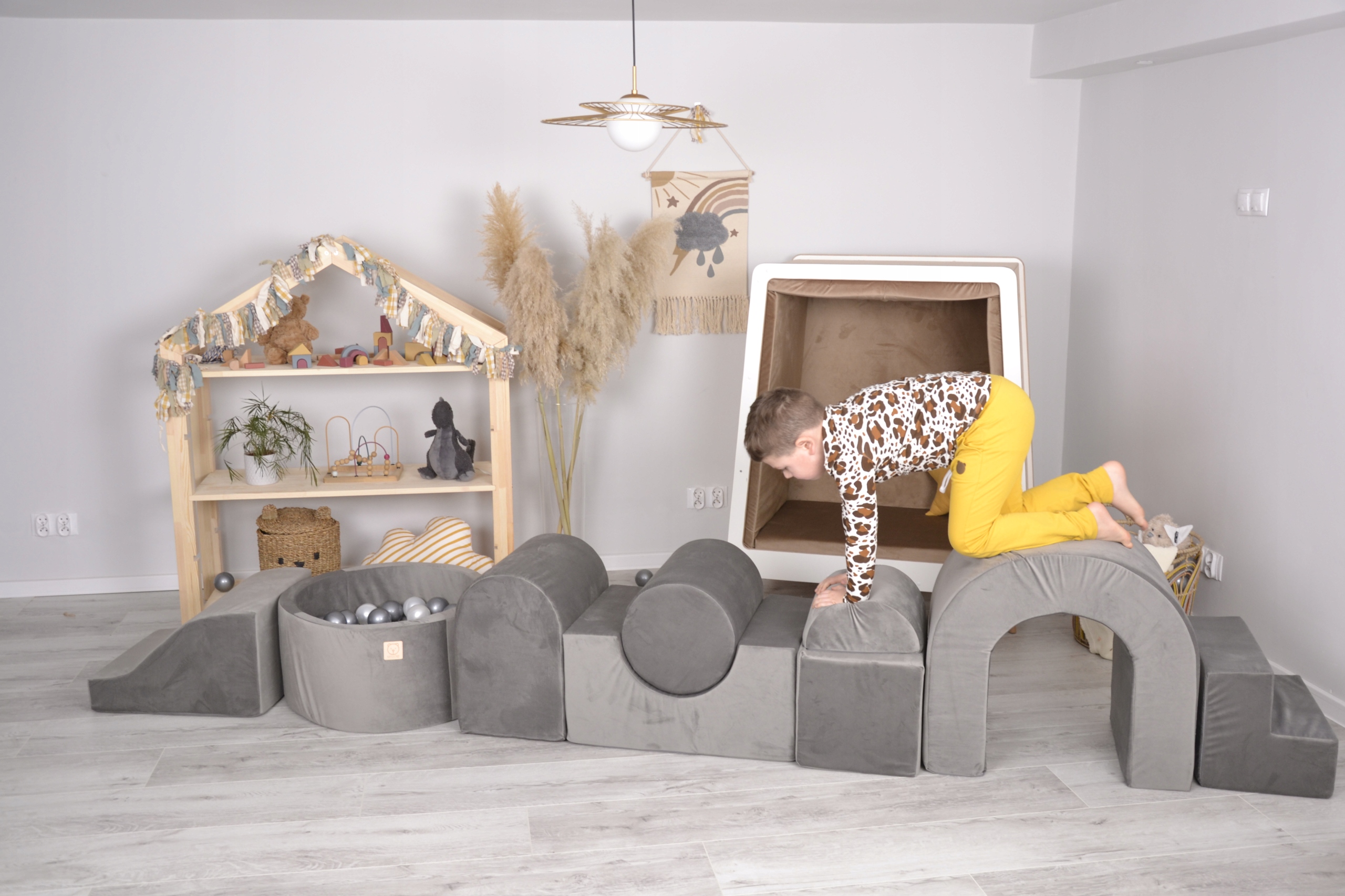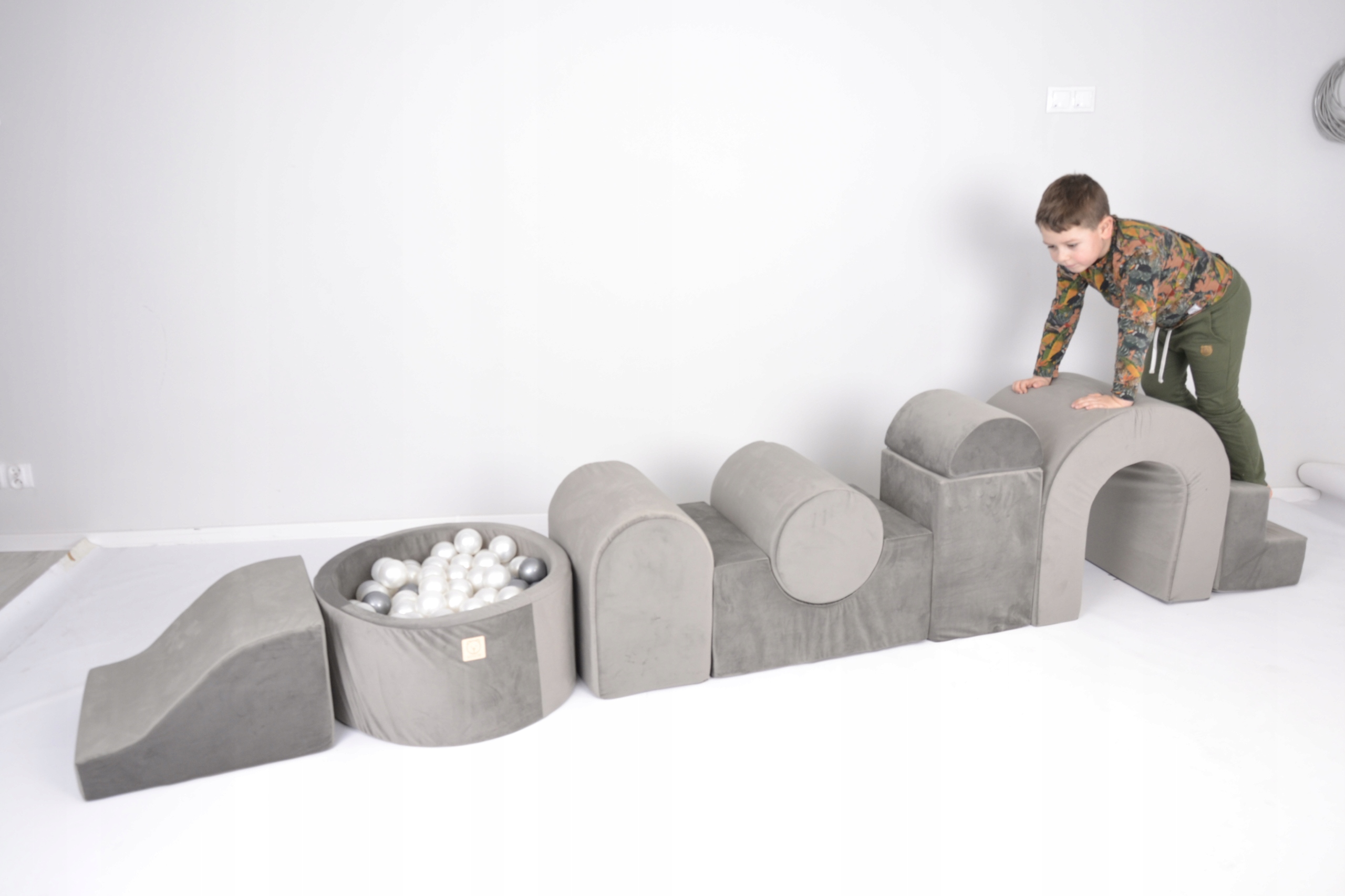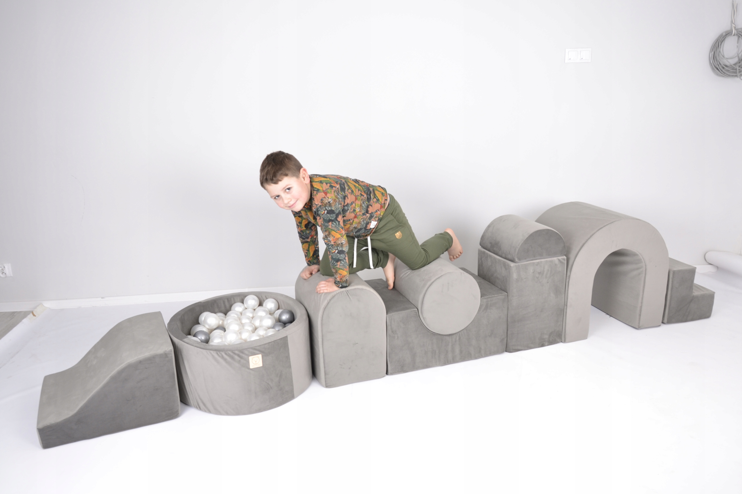 Кожен елемент ігрового майданчика покритий оксамитом, м'якою та приємною на дотик тканиною, що забезпечує безпеку та комфорт вашій дитині.