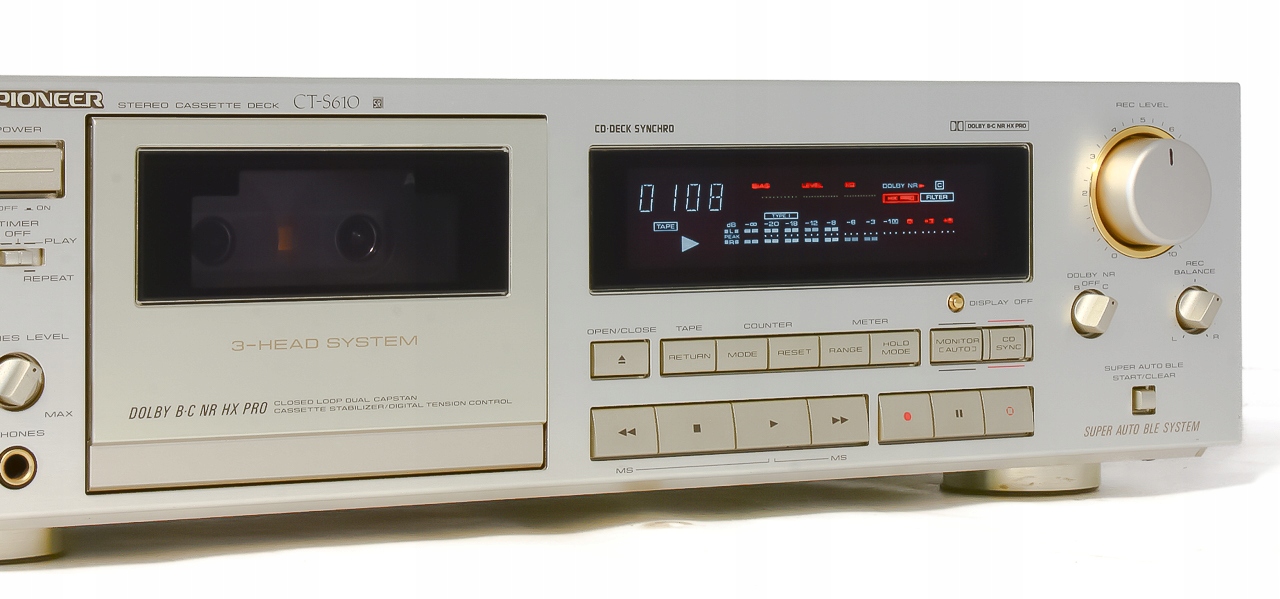 Сенсаційний магнітофон Pioneer. Крім ефектного зовнішнього вигляду, обладнання має багато корисних функцій. Це вища модель. Він оснащений системою шумозаглушення Dolby B і C, системами автоматичного визначення типу стрічки та можливістю регулювання фонового струму, типовою для хороших магнітофонів. Кишеня закривається і відкривається моторчиком. Що й казати, в магнітофоні є практично все, що було винайдено. Технічний стан: Техніка справна, без прихованих дефектів. Функції та технічні характеристики: 3 головки Dolby B/C/S/HX Pro MPX фільтр (для запису з радіо) Система FLEX (дозволяє покращити звучання старих касет) можливість вимкнути дисплей - DISPLAY OFF 2 види відображення лічильника потужності сигналу - загальний і більш точний - корисний при записі Super Auto BLE XD система (встановлення параметрів для конкретної стрічки) функція таймера для повтору всієї сторони стрічки роз'єм для навушників електронно відкривається та закривається кишеня (відмінний патент - видно клас обладнання, відкривання та закривання після натискання кнопки, м'який та елегантний) МОНІТОР - можливість підслуховування під час запису Регулювання балансу та рівня запису під час запису Керується в системі зв'язку Pioneer. Рекомендую!