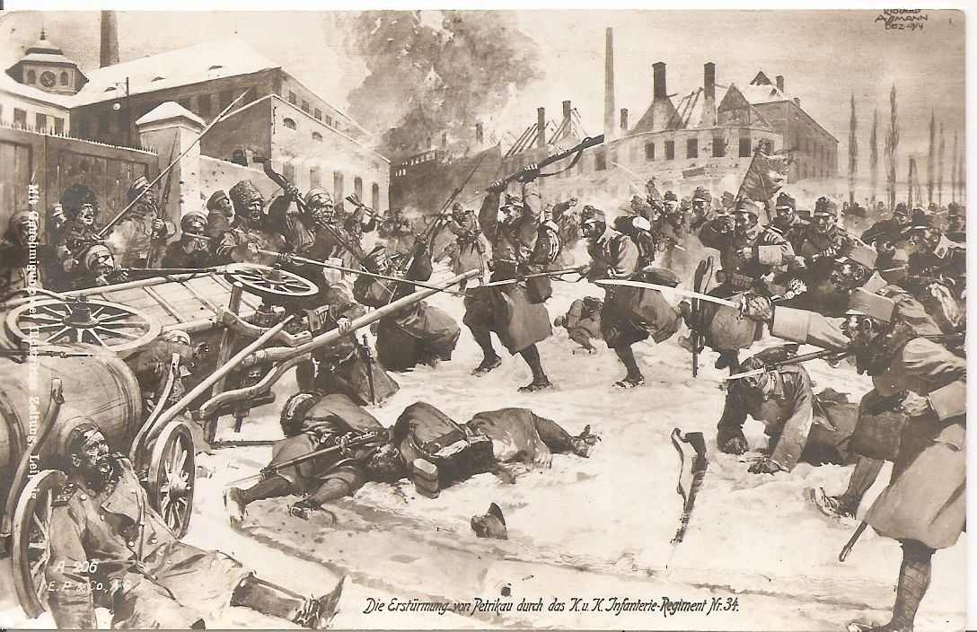 PIOTRKÓW TRYBUNALSKI -I WOJNA ŚWIATOWA -pocztówka malarska -BITWA