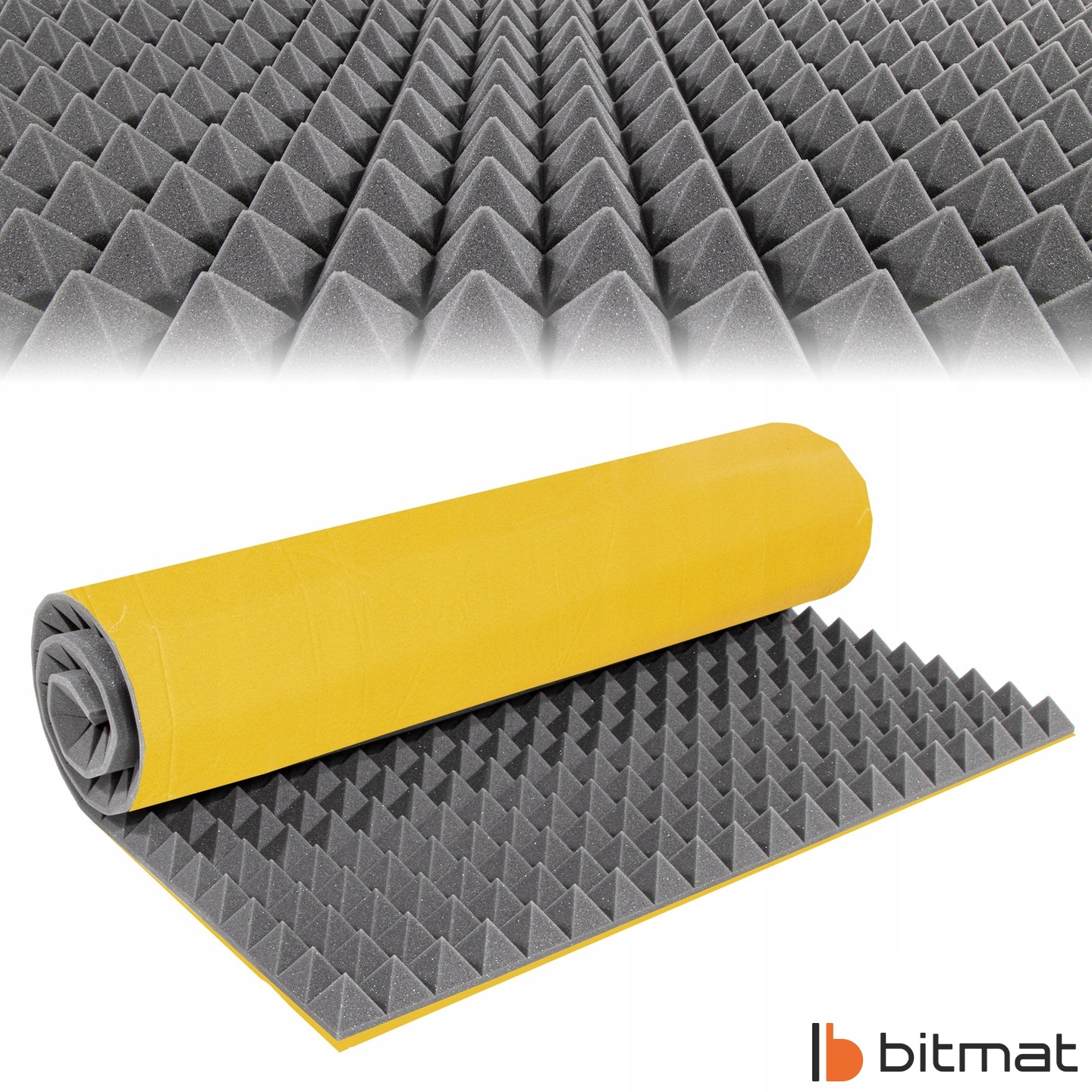 Акустична піна Bitmat, яка також називається акустичною панеллю, виготовлена зі спіненого поліуретану, а її структура являє собою відкриті комірки. Використання пірамідального профілю з оптимальним співвідношенням основи та профілю робить коефіцієнти звукопоглинання та відбиття значно вищими, ніж у плоских акустичних конструкцій або з більш товстою основою. Це оптимальний додаток, який за відносно низьких витрат дозволяє запобігти реверберації, покращує якість проживання в кімнатах і покращує розбірливість мови у житлових і робочих кімнатах, а також створює сучасний дизайн. b>
