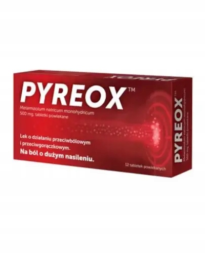 Піреокс 500 мг — лікарський засіб у формі таблеток. Препарат містить метамізолу натрію моногідрат. Піреокс – це лікарський засіб з болезаспокійливою, тобто болезаспокійливою, жарознижувальною та спазмолітичною, тобто знімає спазм гладкої мускулатури. Препарат призначений для підлітків старше 15 років і дорослих.