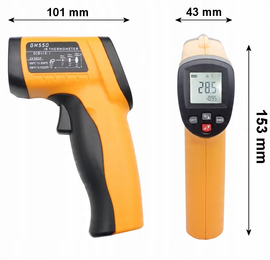 Високоякісний безконтактний інфрачервоний термометр для вимірювання температури в оd діапазон від -50 до 550 градусів за Цельсієм.