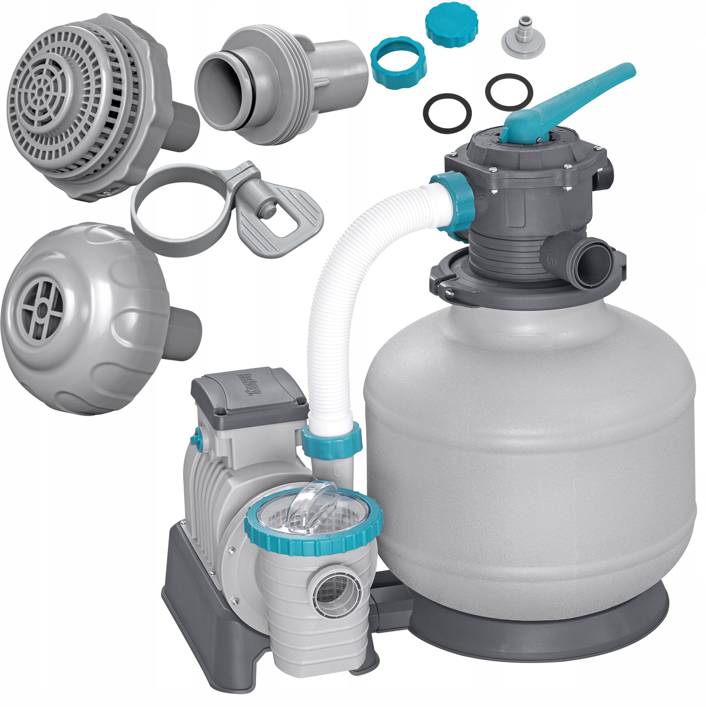 Щоб задовольнити очікування клієнтів, Bestway підготував новий піщаний насос для садових басейнів відповідного діаметра, що означає ширину шлангів 38 мм. Насос потужністю 11355 літрів/год. Він має антикорозійну здатність близько 36 кг. Стільки піску слід вилити перед першим очищенням води. Експлуатація пристрою дуже проста, а для більшої зручності продукт є попереднім комплексом.