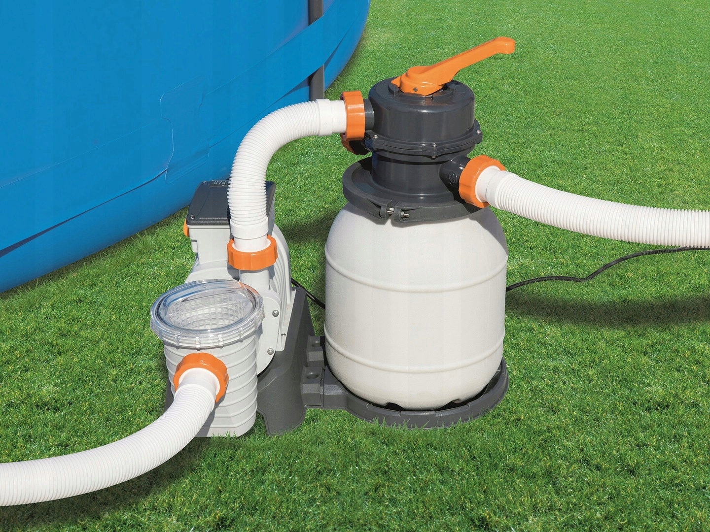 Щоб задовольнити очікування клієнтів, Bestway підготував сучасний пісок для саду та розширювальних садових басейнів з 38 мм зміями. Насос потужністю 5678 літрів на годину містить 9 кг антикорозійного резервуара - стільки піску потрібно виливати перед першим очищенням води (пропозиція не включає пісок фільтру). Експлуатація пристрою надзвичайно проста, і для більшої зручності користувача він був попереднім. Для контролю над своєю роботою буде корисним вбудований манометр -манометр (манометр), що дозволяє контролювати параметри роботи. Виходячи з його показань, ви можете легко визначити, коли фільтр вимагає промивання. Набір також включає адаптер 3,8/3,2 см і просто підключіть його до басейну, щоб мати можливість насолоджуватися чистою та безпечною водою. фільтрація. Коли вода перекачує через пісок фільтру, бруд і бруд спіймані фільтром і відфільтрованими родовищами. Відфільтрована вода підбирається внизу фільтр -резервуара через мульти -журнальний клапан і повертається до трубчастої системи. Запропонований насос - це економічне рішення, яке дозволяє очистити воду в басейні дешево та ефективно. Продукт підходить до басейнів потужністю 1100-42300 л.