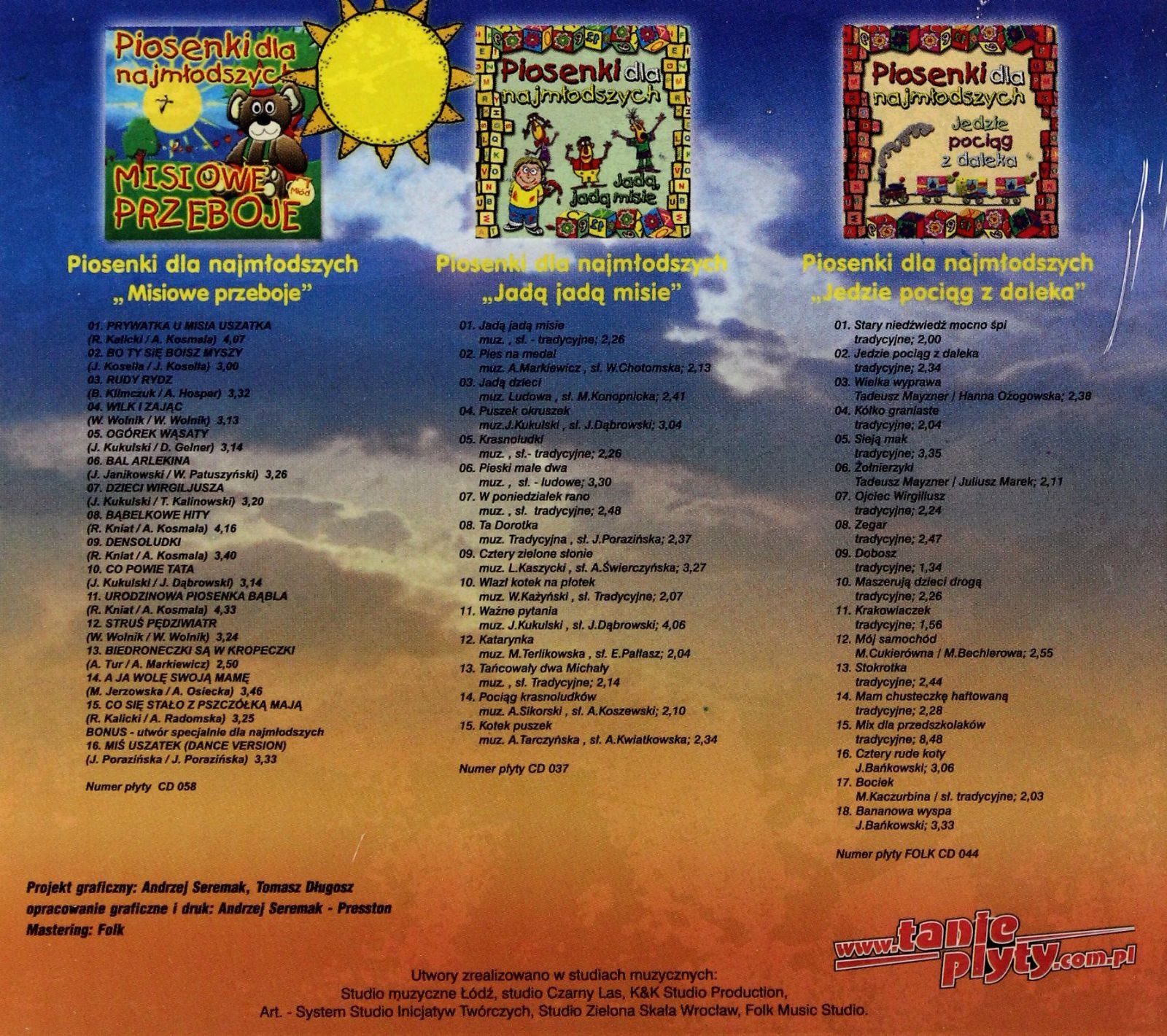 Просматривая «ПЕСНИ ДЛЯ САМЫХ МАЛЕНЬКИХ ДЕТЕЙ 3CD», вы можете быть уверены, что данный товар из каталога «Для детей» будет доставлен из Польши и проверен на целостность. В цене товара, указанной на сайте, учтена доставка из Польши. Внимание!!! Товары для Евросоюза, согласно законодательству стран Евросоюза, могут отличаться упаковкой или наполнением.