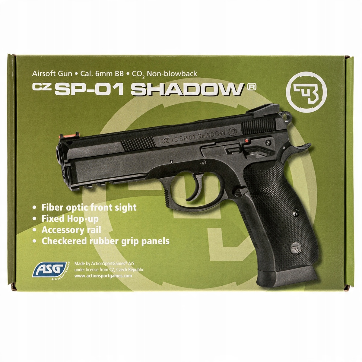 пістолет ASG CZ SP-01 Shadow GNB-це ліцензована тінь репліки CZ 75 SP-01, створена на заводі Чески ZBrojovka. Зроблений в основному з пластику, репліка вірно відтворює всі легкозаймисті прототипи в замку і захоплюють. Журнал містить максимум 15 6 мм куль.