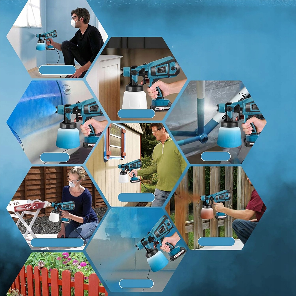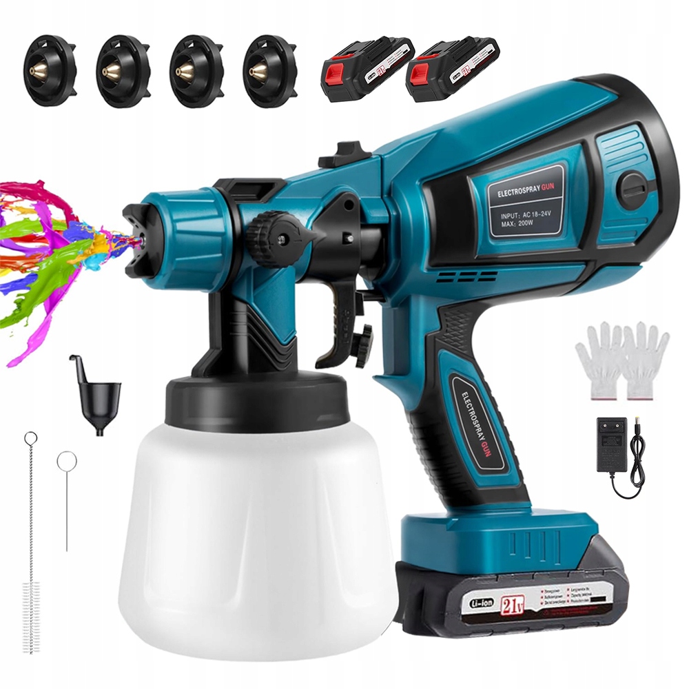 Ця система розпилення фарби оснащена двома батареями ємністю 3000 мАг для довшого терміну служби.